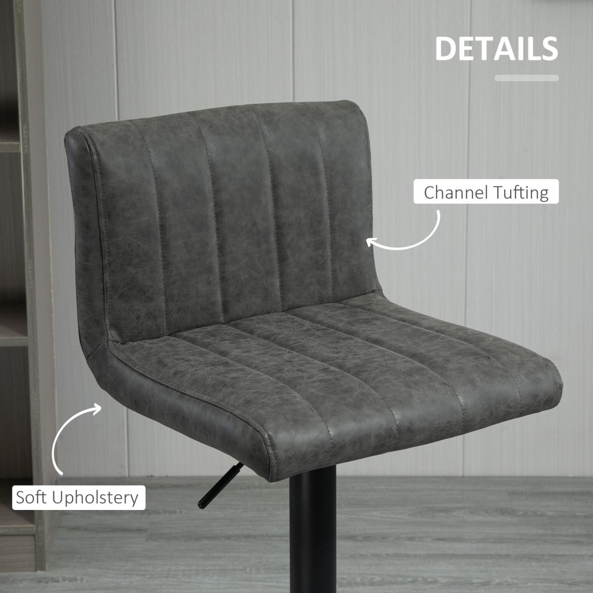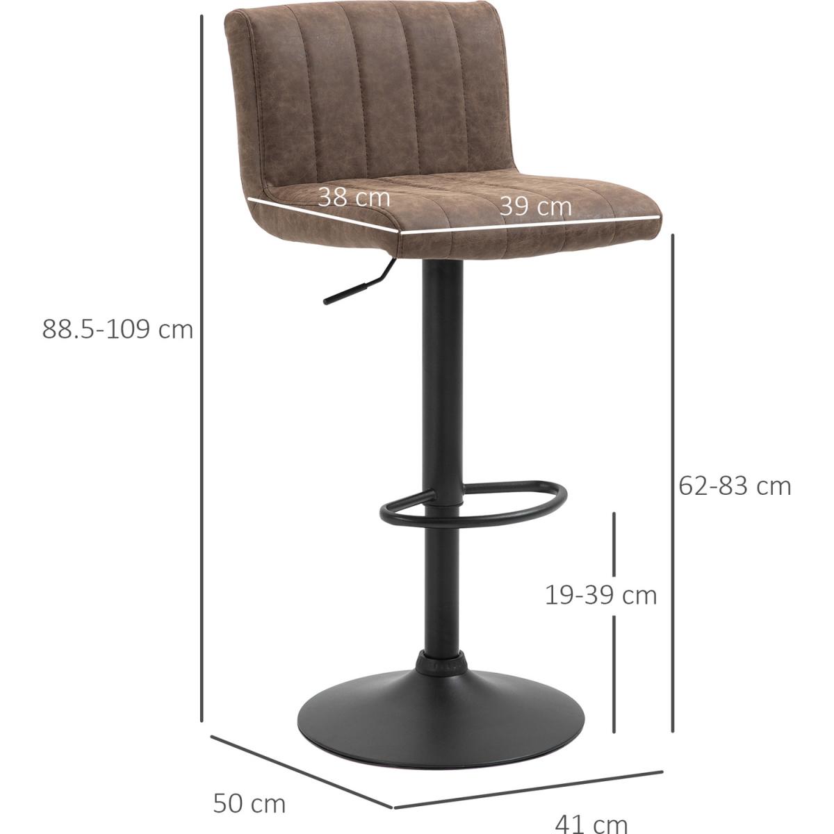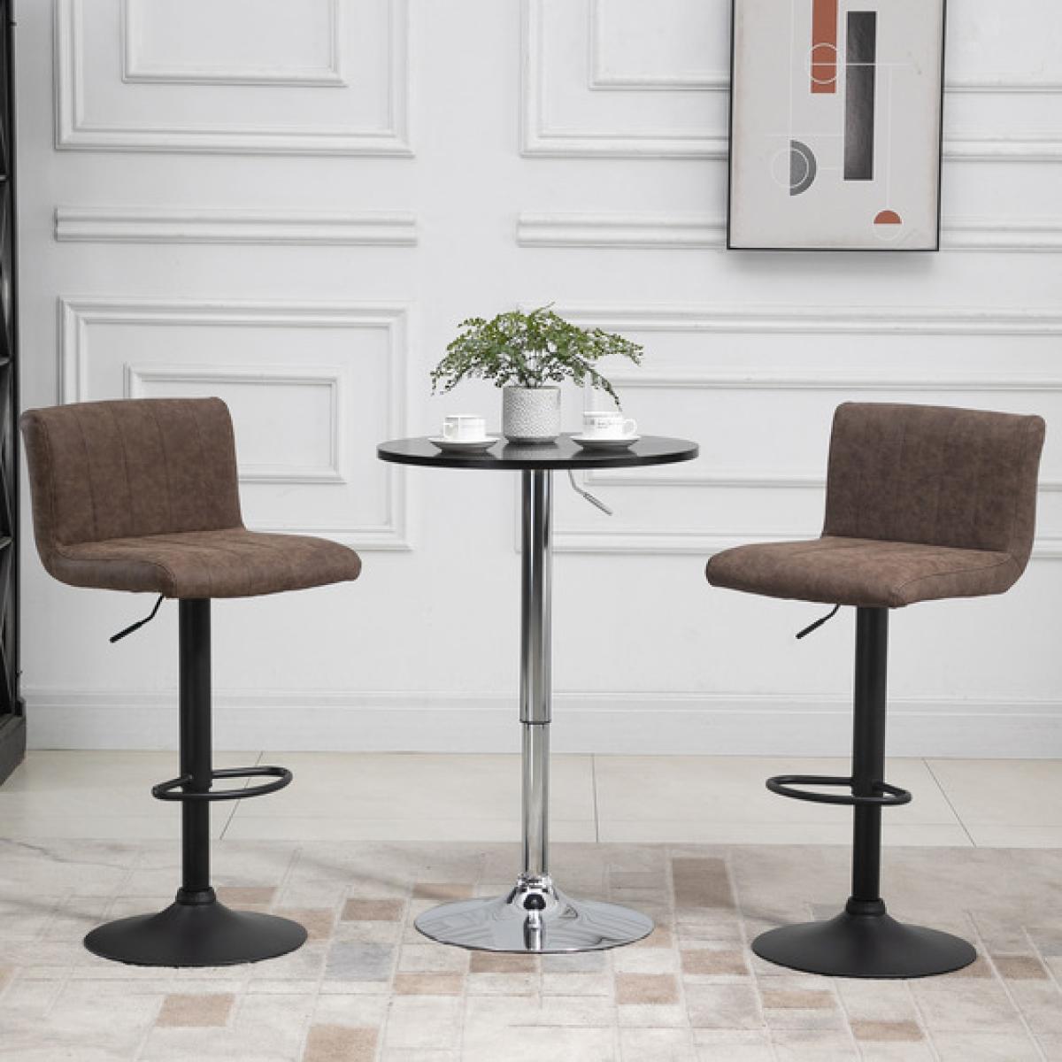 The weathered PU leather upholstery adds instant style, whilst the steel frame ensures full support whilst seated. Seats feature a high back for support, with padding all-over for comfort. Adjustable height to be in level with your worktop/table, each stool comes complete with a large round base for balance.