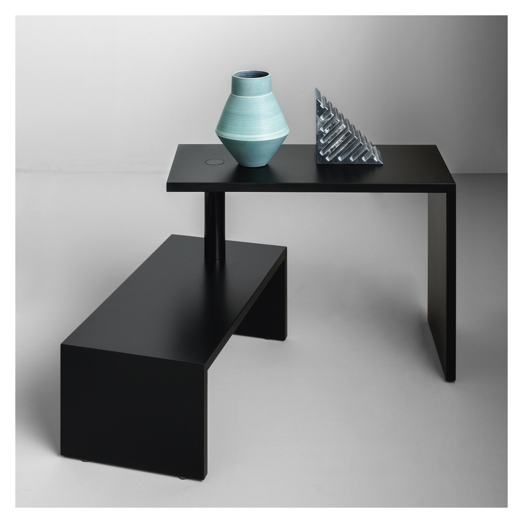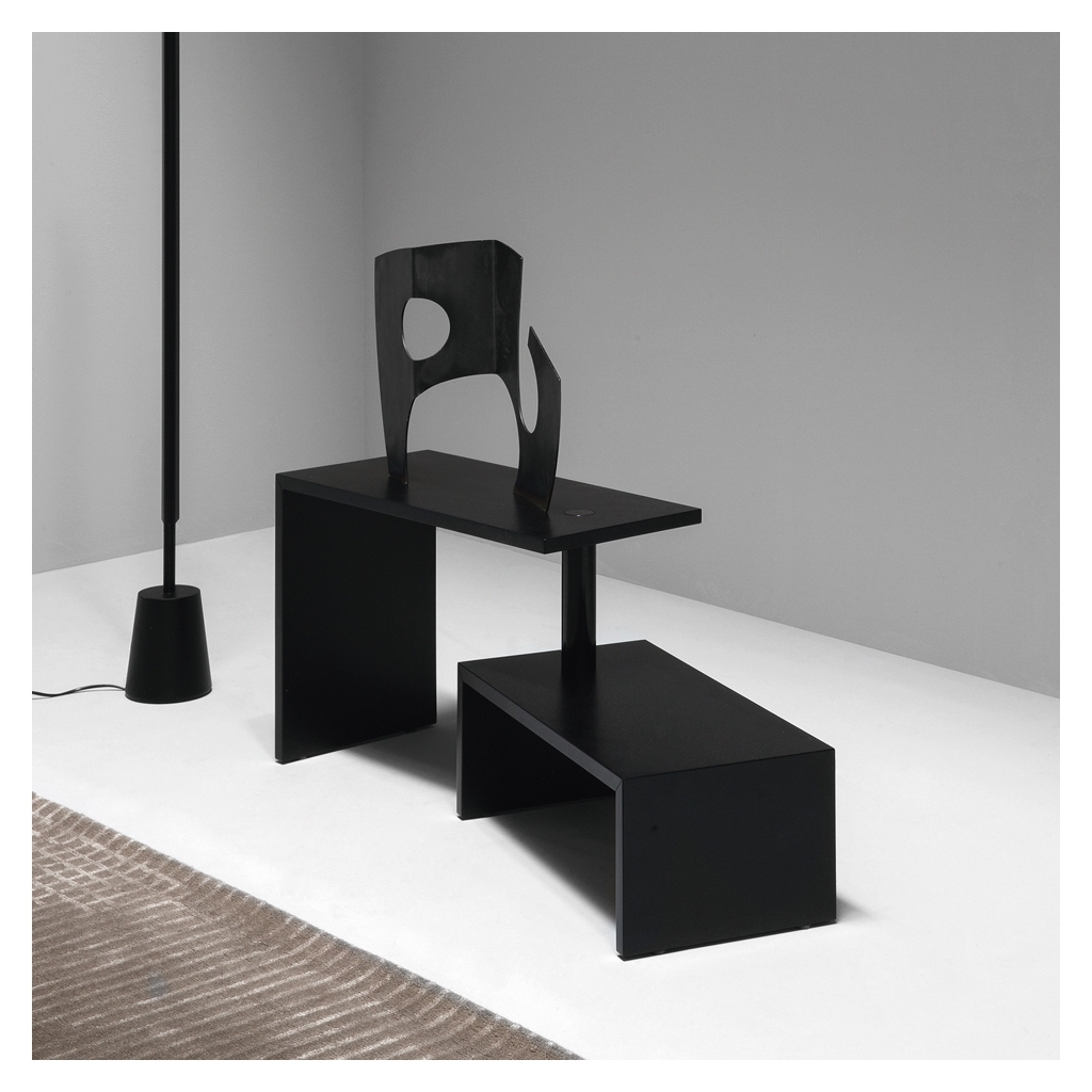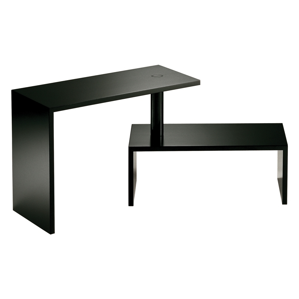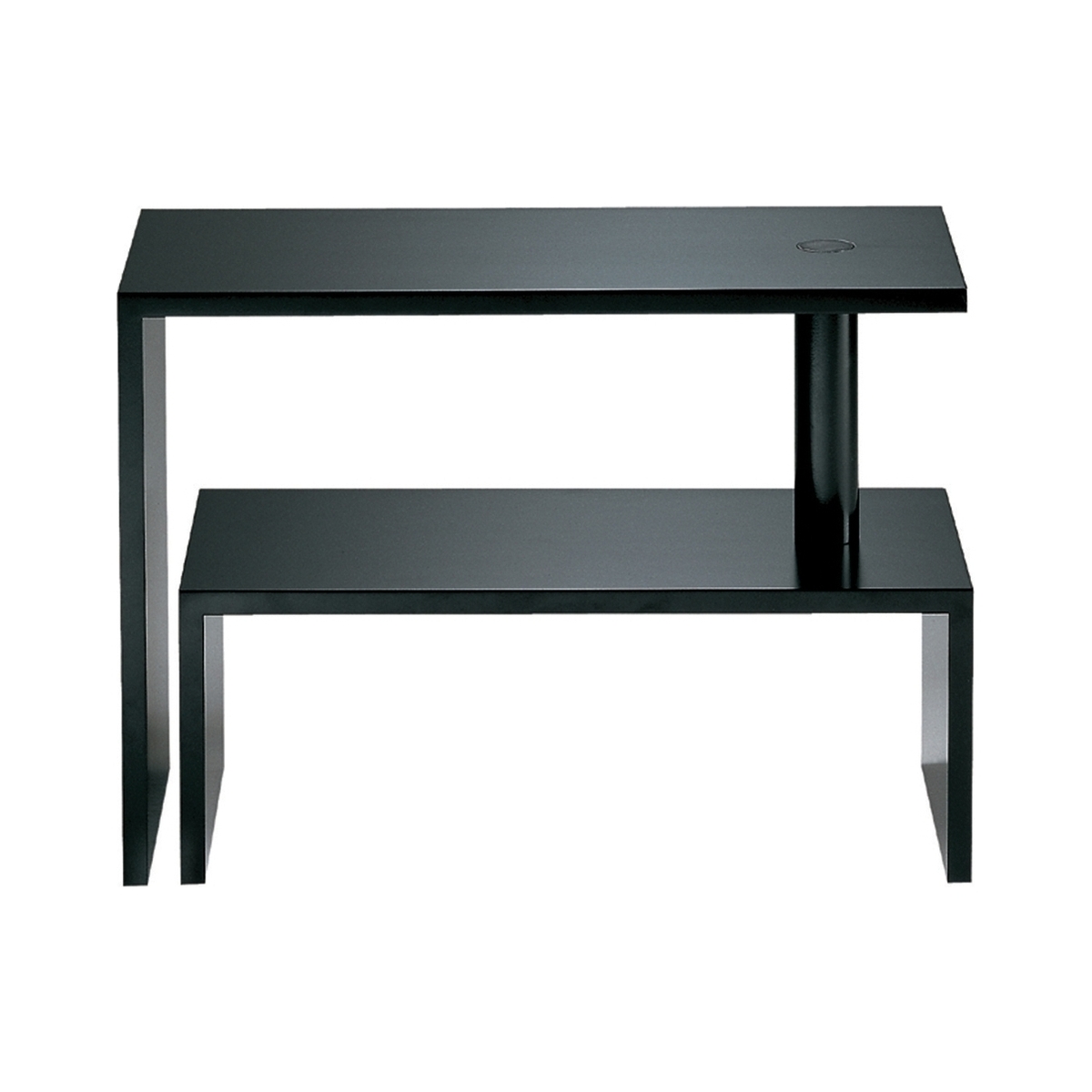 Designed in 1987 by Achille Castiglioni, the Basello Side Table is a dynamic piece that offers two versatile surfaces in an elegant deep black hue. The Basello Side Table showcases a scratch-resistant rich black body, with a black steel articulated joint allowing versatile movement of the top level. This manoeuvrable design ensures a resilient surface and striking aesthetic. Manufactured by Italian leaders in industrial design, Zanotta, the Basello Side Table in black would make a distinctive addition to any living space.