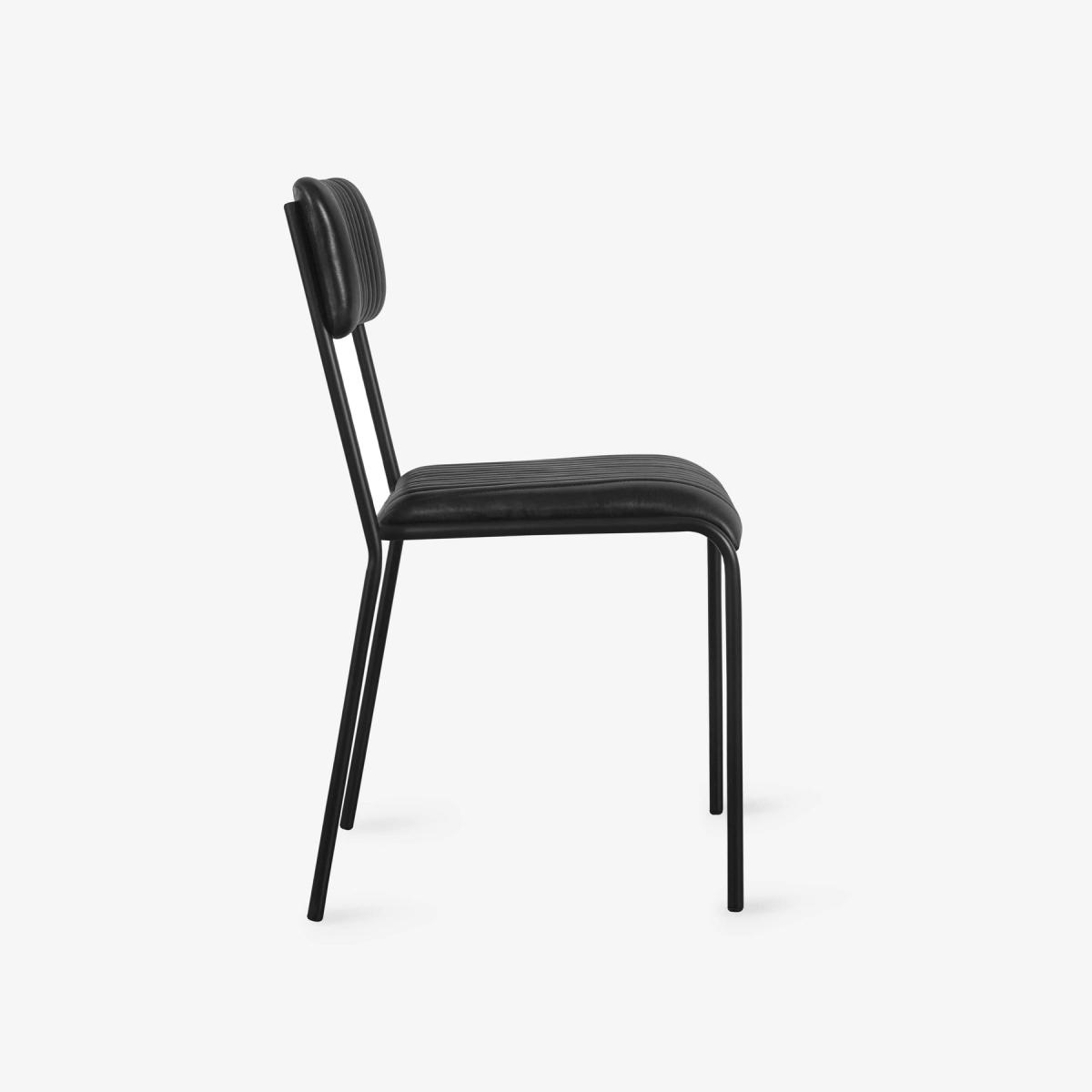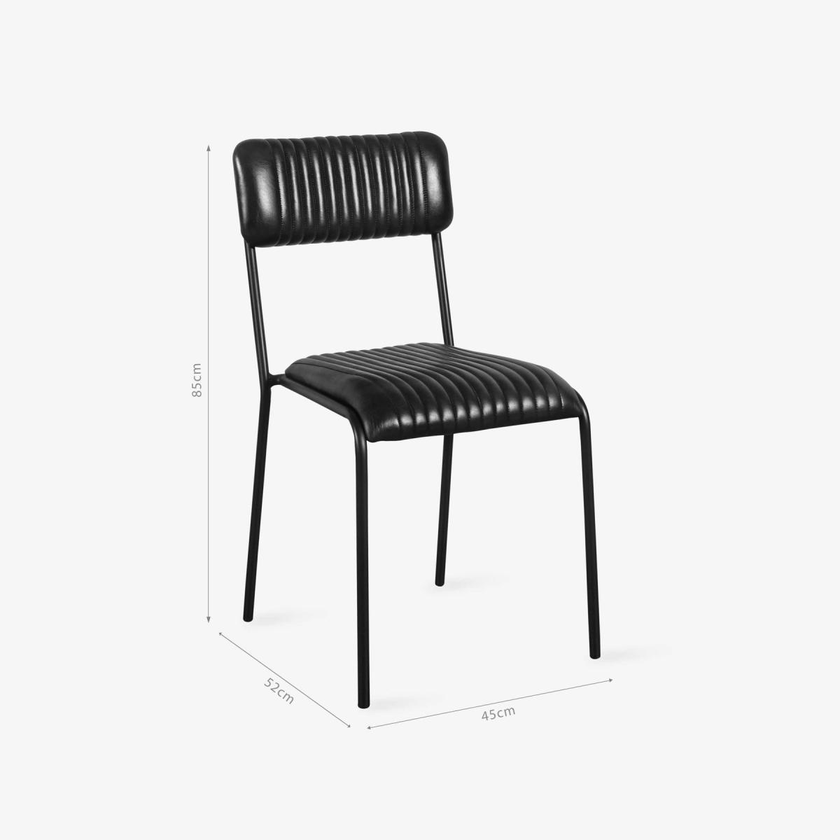 Our Basil leather dining chair offers characterful comfort with its distinctive mid-century-inspired design. Basil comes with a sleek nickel base frame and has a simple, open-back design that suits a variety of interiors. The chair features a pleated leather seat and a back upholstered in durable aniline buffalo leather, which gives this chair a beautiful soft leather feel for maximum comfort. This functional and stackable chair is ideal for a dining table chair or office seat at home thanks to its light and compact shape. A great choice for the dining room, workplace, or kitchen, it will age wonderfully and offer character and warmth.