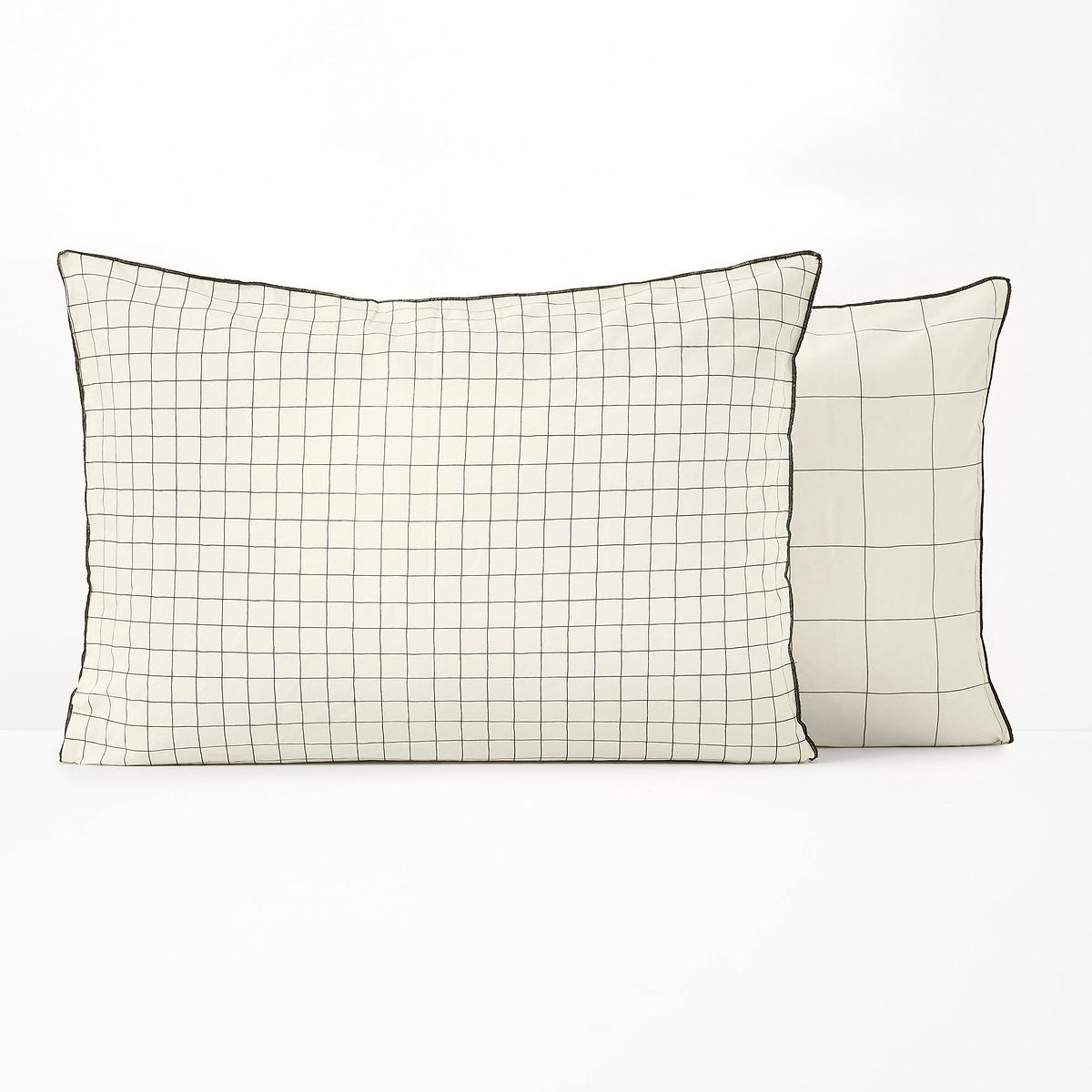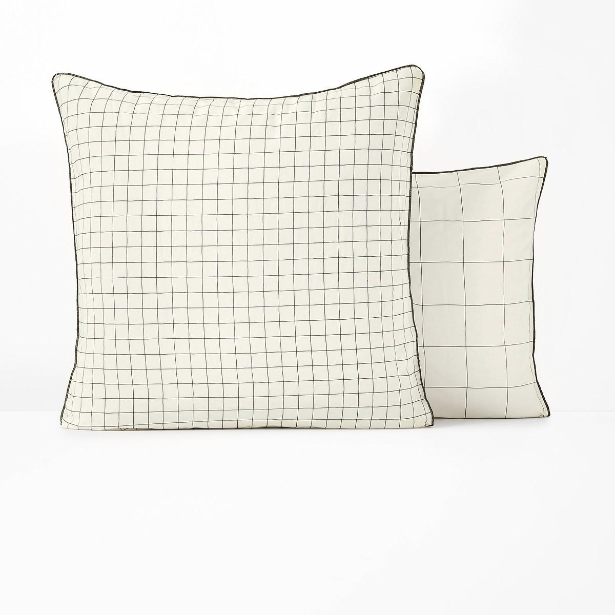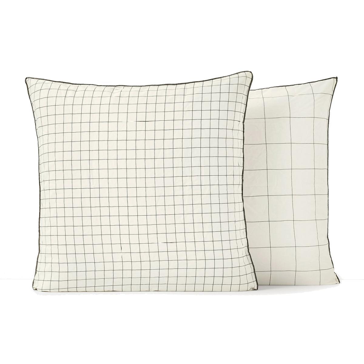 The Basile checked washed cotton pillowcase. This charming pillowcase is made from soft and supple washed cotton. Its graphic check print will create a contemporary atmosphere. The washed cotton has been delicately bleached during its manufacture. Soft, supple and comfortable, it softens over time. Its slightly wrinkled appearance is incredibly on-trend, and it does not require ironing. Product Details • 100% cotton • 144 thread count • 1 side of large checks, 1 side of small checks on an ecru background • Sack shape. Care Advice • Machine washable at 60°C • By washing your laundry at 40°C instead of 60°C, you limit energy consumption. Sizes • 63 x 63cm: Square • 50 x 70cm: Rectangular • OEKO-TEX® Standard 100. Standard 100 certification by OEKO-TEX® tests textile products for harmful substances via an independent, international label.