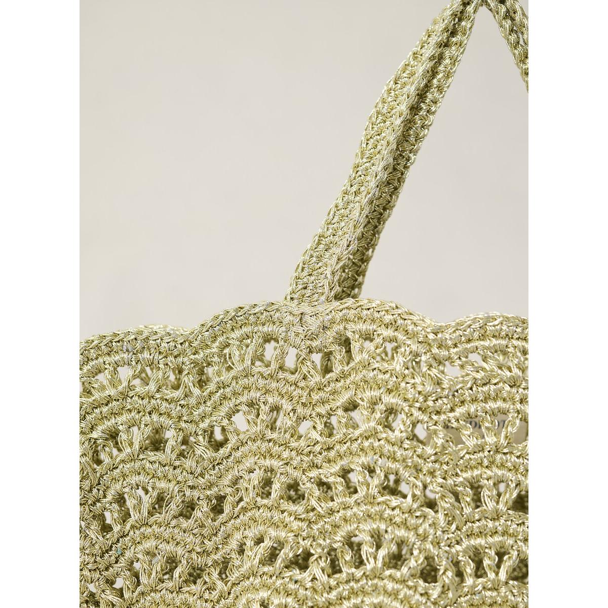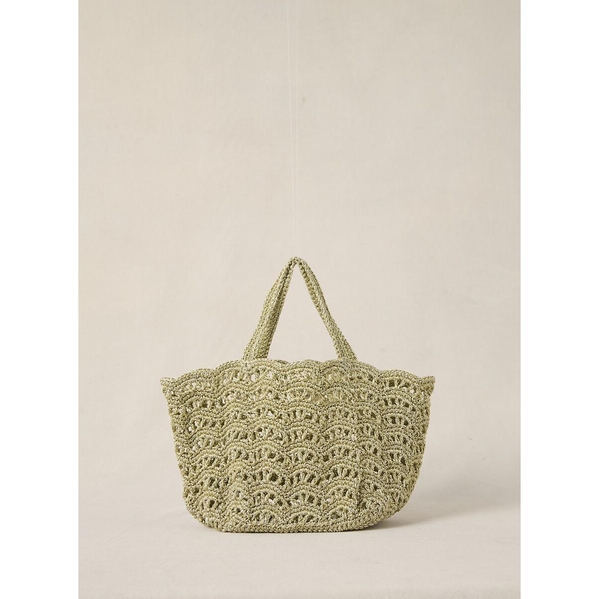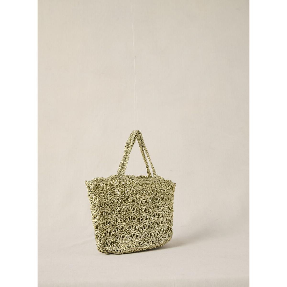 A bag for the city or on holiday, for the beach or the market : the Petite Mendigote basket bag - SWEETY model. A traditional style tote with an extra twist, this bag with handles is made from crochet material with a metallic effect. Product details • Type of bag: tote bag • Suitable for the beach • Carry in your hand • Handles • Main fastening: none • Dimensions:H21 x W20 x D20 cm. Fabric content and care advice • 70% polyester, 30% cotton • Please refer to the care instructions on the product label