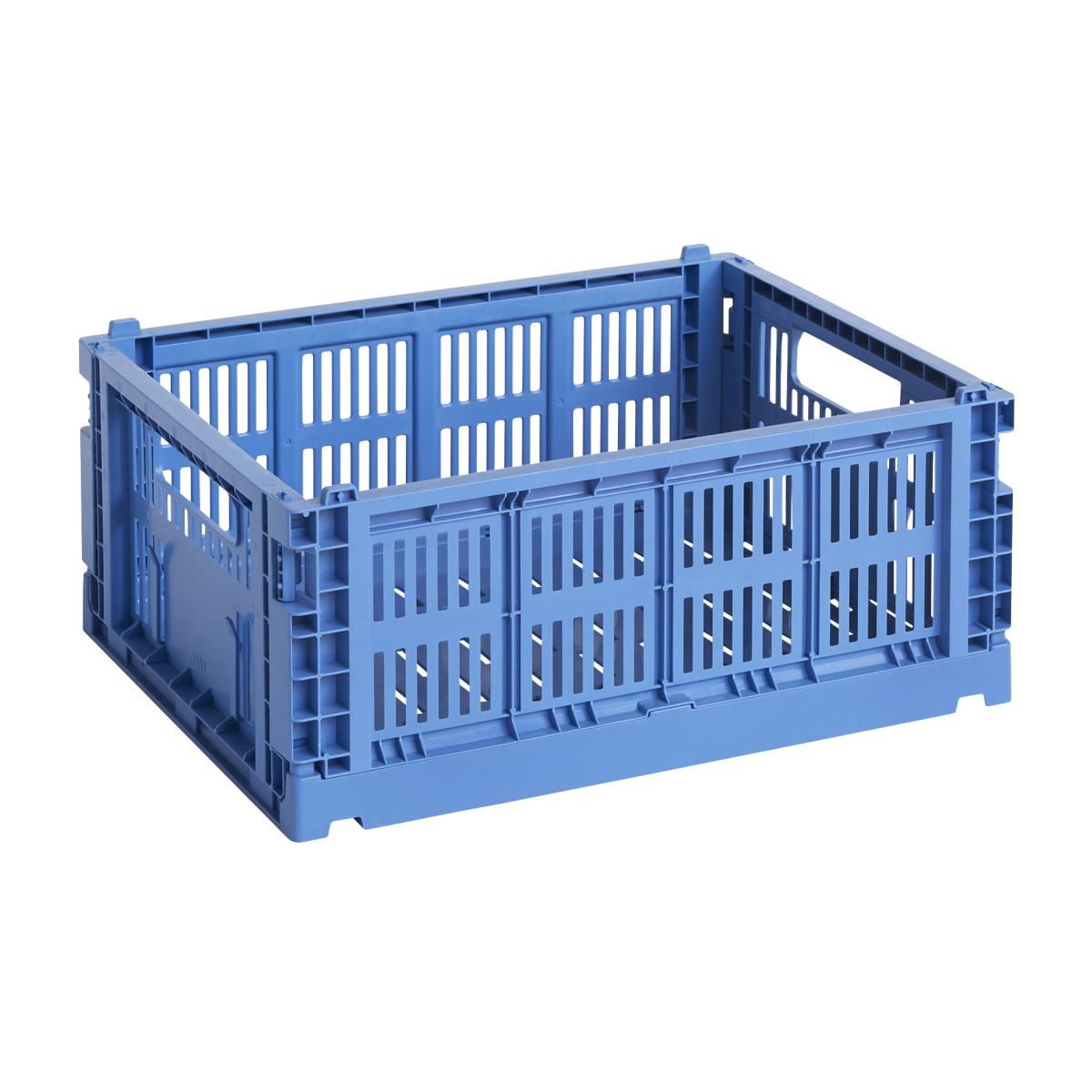 Eco-friendly, this recycled polypropylene basket is made from post-consumer plastic waste. Hay revises the classics and gives us a fun, colourful version of traditional vegetable crates. Available in a superb palette of current colours, these plastic storage units have an industrial, quirky, trendy look. True bestsellers from the Danish brand Hay, Colour Crate storage units are both decorative and ultra-functional. Colour Crate boxes are stackable, foldable, light, strong and easy to clean. They let you organise everything: from the kitchen to the office, via the bedroom, bathroom, laundry room and garage... These storage units can safely come into contact with food: you can put fruit and vegetables in them. These storage units are also perfect for organising the contents of your fridge or cupboards. To brighten up your decor, feel free to mix the colours!