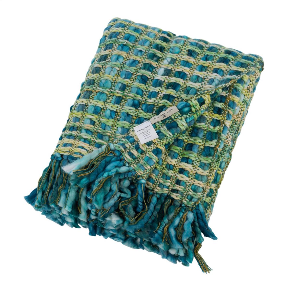 Snuggle under this Basket Weave throw from MacKenzie-. Childs. Made from acrylic, this chunky knit features shades of blue and green and has been finished with fringed edges. Throw over your favourite chair or the end of your bed for an instantly layered look.