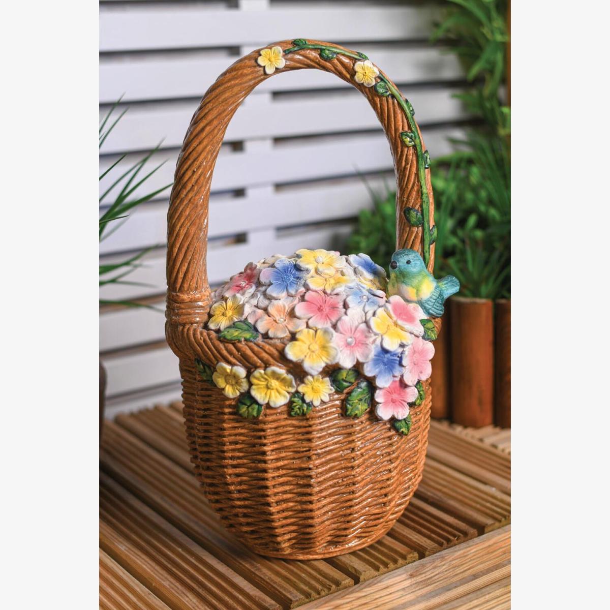 This beautiful Basket With Solar Flowers is the perfect addition to brighten your outdoor space or offer as a gift for someone you love. With warm white LEDs encompassed into the floral arrangement, this Basket With Solar Flowers will stand out and be a show-stopping piece for your garden.