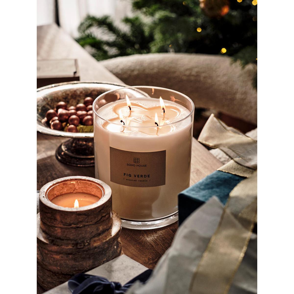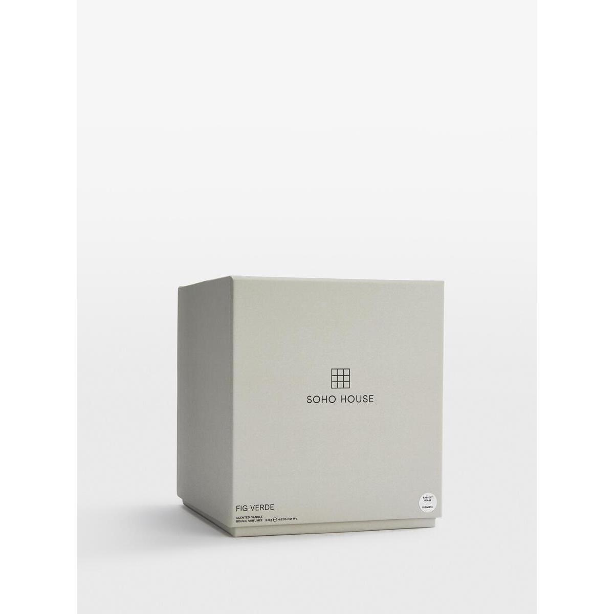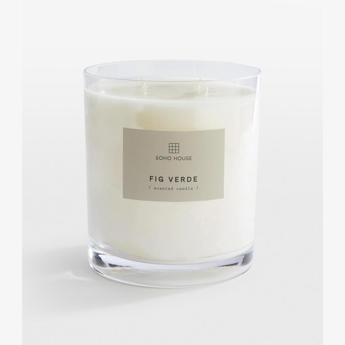 Our Fig Verde fragrance is infused with Green Figs, Dried Fruit and Rose Petals to recall evening strolls around the courtyard garden at Soho House Istanbul. The three-wick Ultimate Bassett candle is hand-poured in England using a blend of mineral and vegetable wax to provide a clean burn and long-lasting scent release. Scent notes Top: Cassis Middle: Fig Base: Amber Large three-wick candle with Fig Verde fragrance Glass vessel Mineral wax fill Hand-poured in England Bespoke fragrance created by an expert perfumer for Soho House Fill weight 2.1kg Inspired by Soho House Istanbul