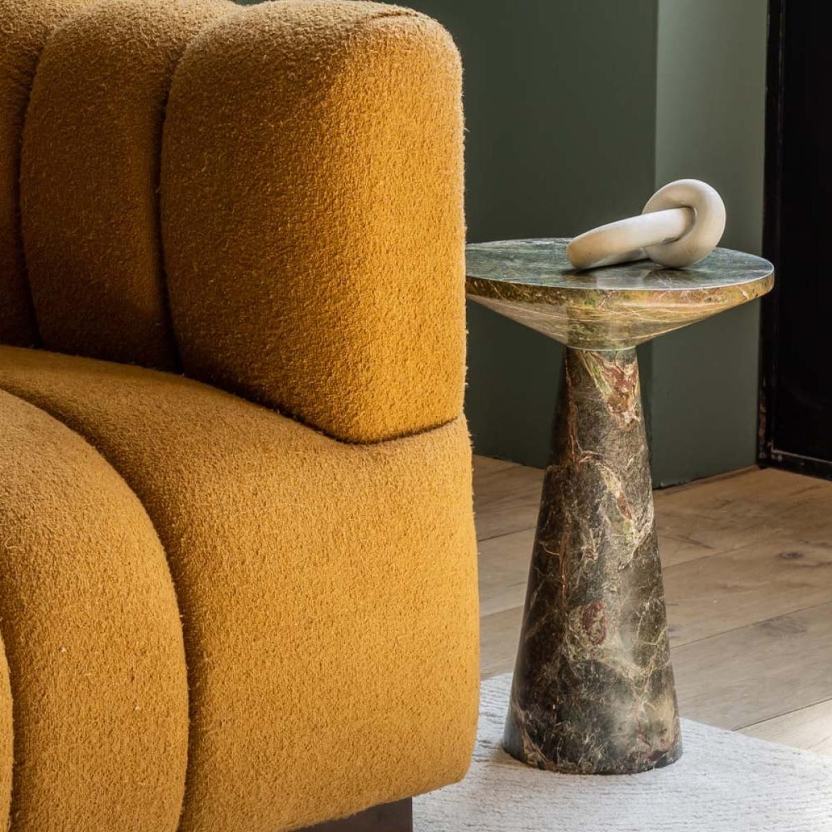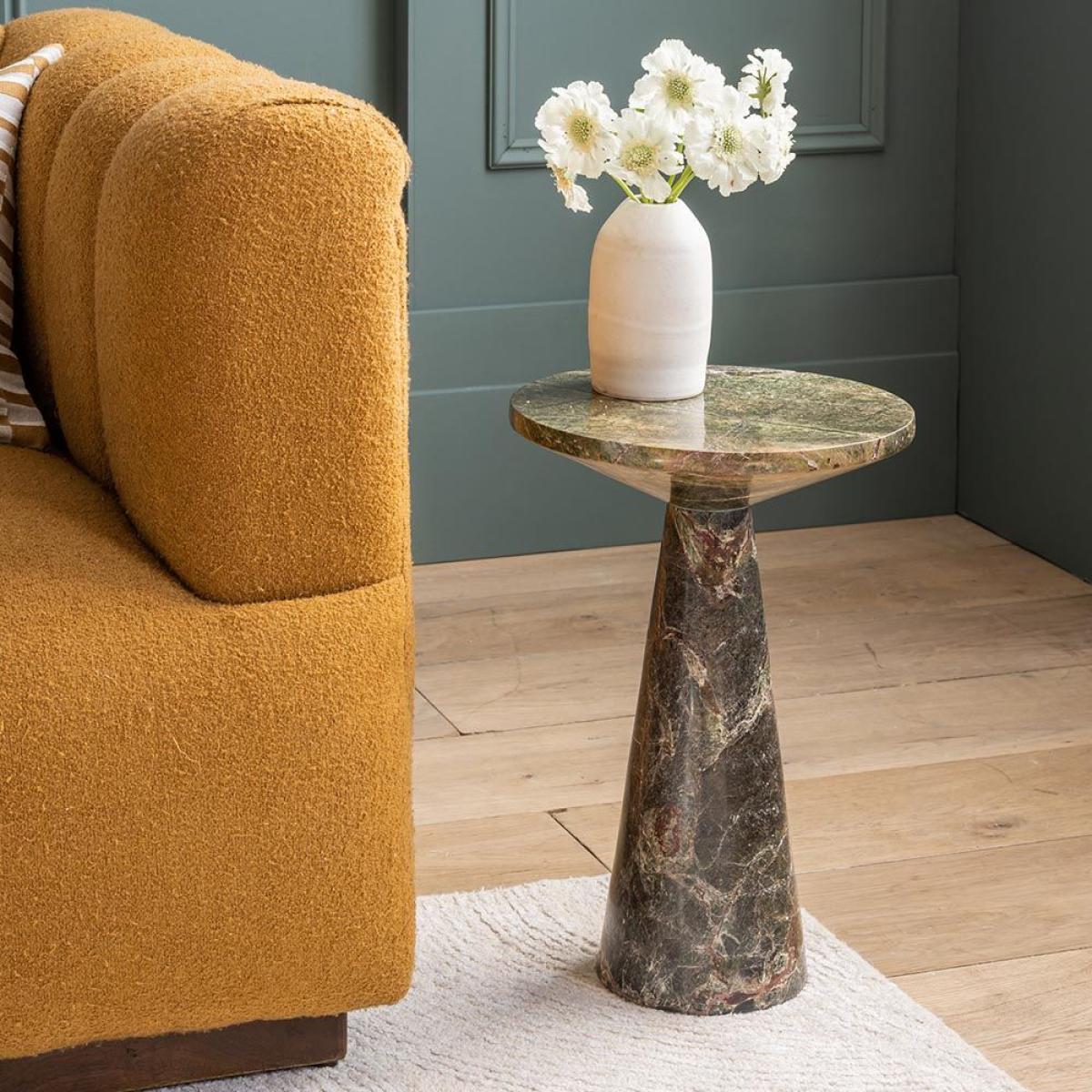 This marble side table is a complete scene-stealer in any space. Basso is made from solid green marble, and because of the naturally beautiful material, each piece showcases different veining and colours – from emerald-greens to golden-yellows and ruby reds. A veritable jewel-box of rich and decadent tones. The base comprises a neat conical shape, making for a small footprint that doesn’t take up valuable floorspace, while the top is circular to offer plenty of room for drinks, nibbles or accessories. Why not pop your green marble side table next to your sofa or armchair for a look that’s both practical and beautiful?