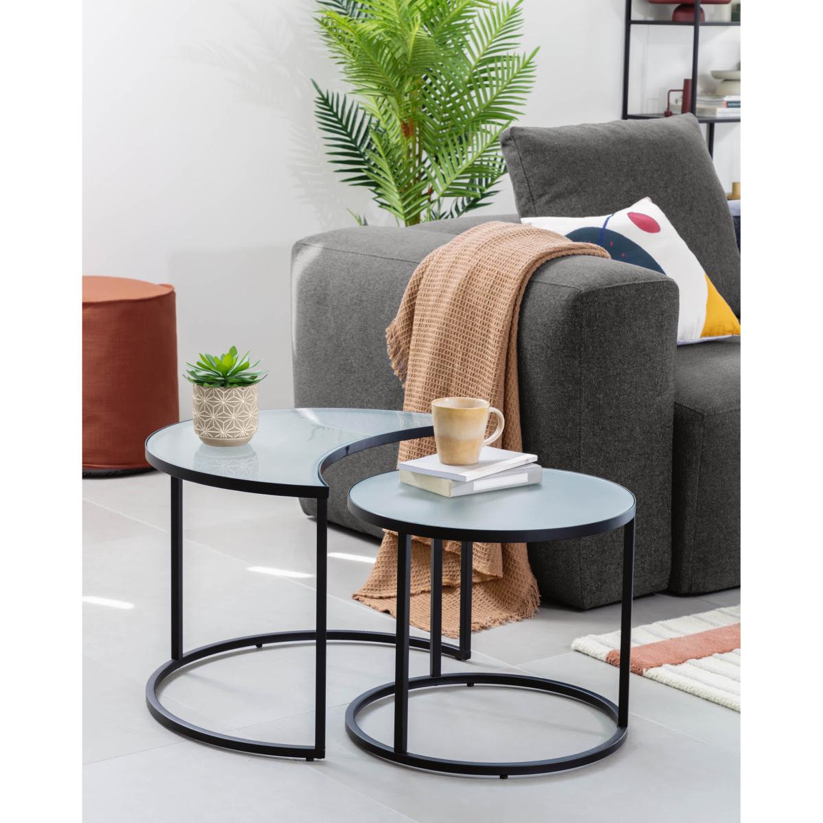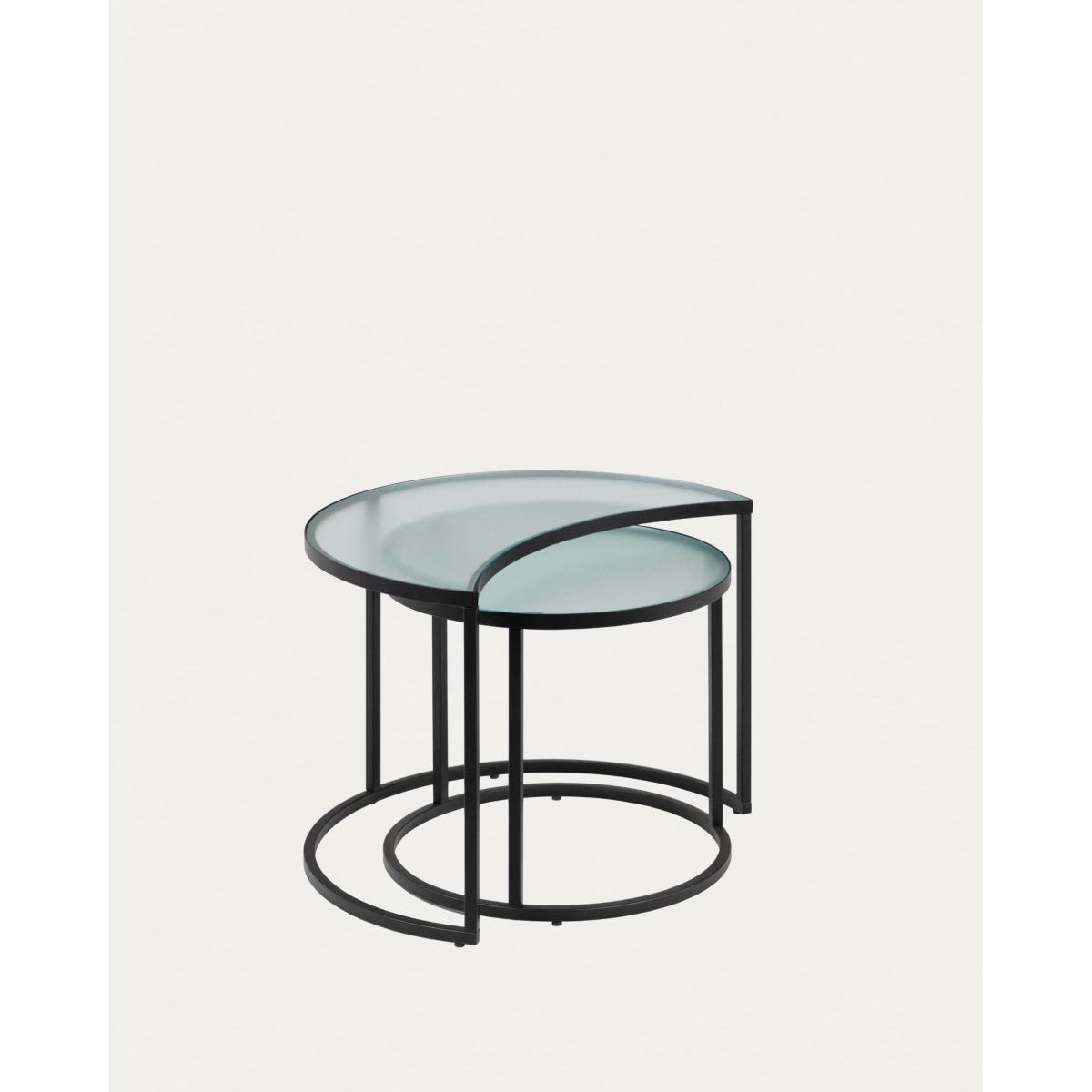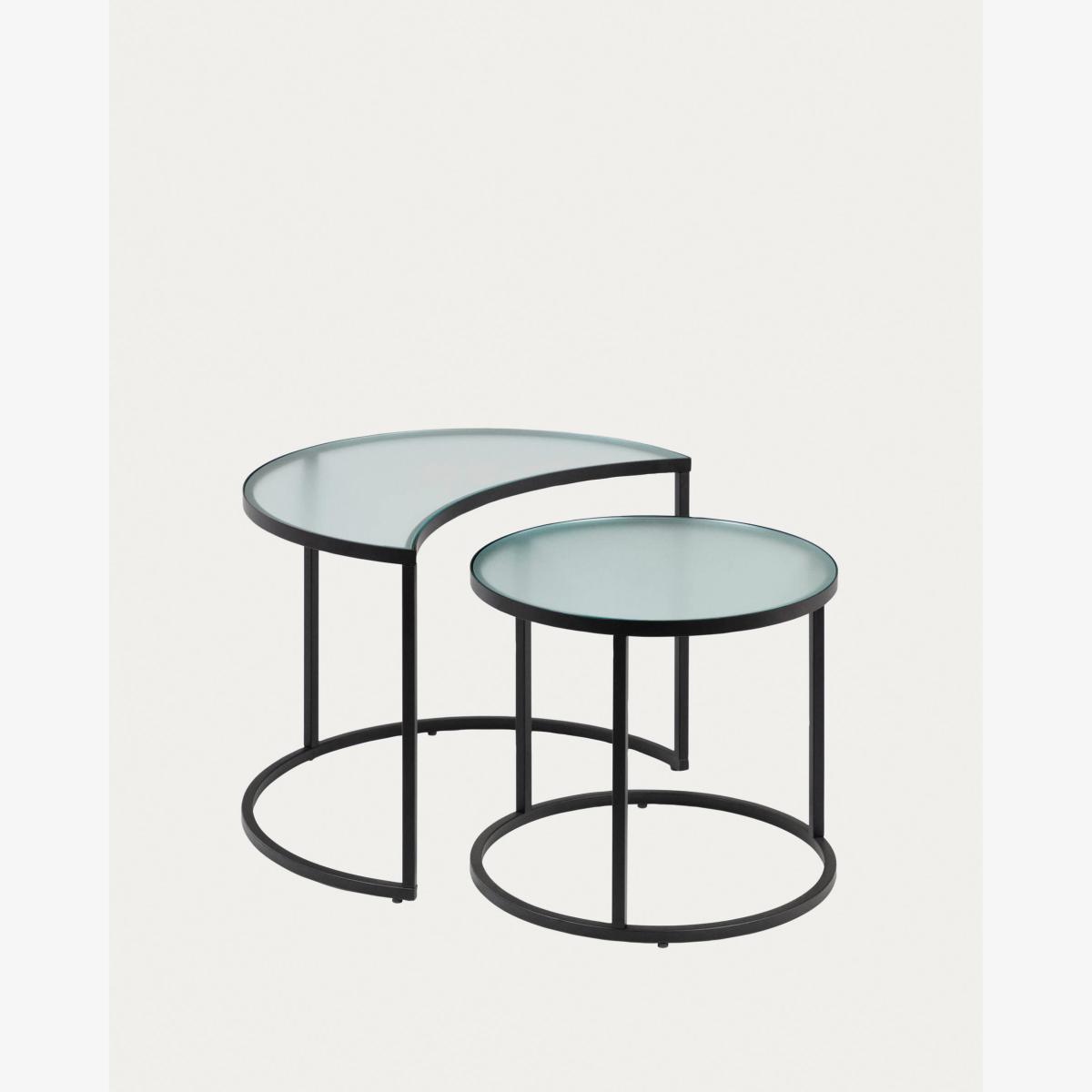 This set of 2 side tables of Ø 47 cm and 60 x 46 cm is made to be perfectly suit any occasion and they only take up little space. They are made out of textured glass, which creates a translucent look, ideal for industrial style interiors.