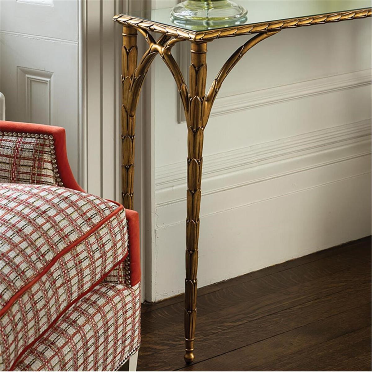 I love this accent piece for adding a touch of elegance with its metallic finish and delicate frame. The Bastian console works particularly well in both modern and vintage-inspired interiors, adding a sophisticated statement without overwhelming the space. It’s perfect placed behind a sofa, at an entryway, or even in a hallway, where its slim profile makes it a versatile choice. Practical styling tips include layering with a sleek tray for keys and mail, adding a small lamp or decorative objects for texture, or using it as a display surface for art or plants to create visual interest. Its refined look makes it an effortless way to elevate any transitional or contemporary space.