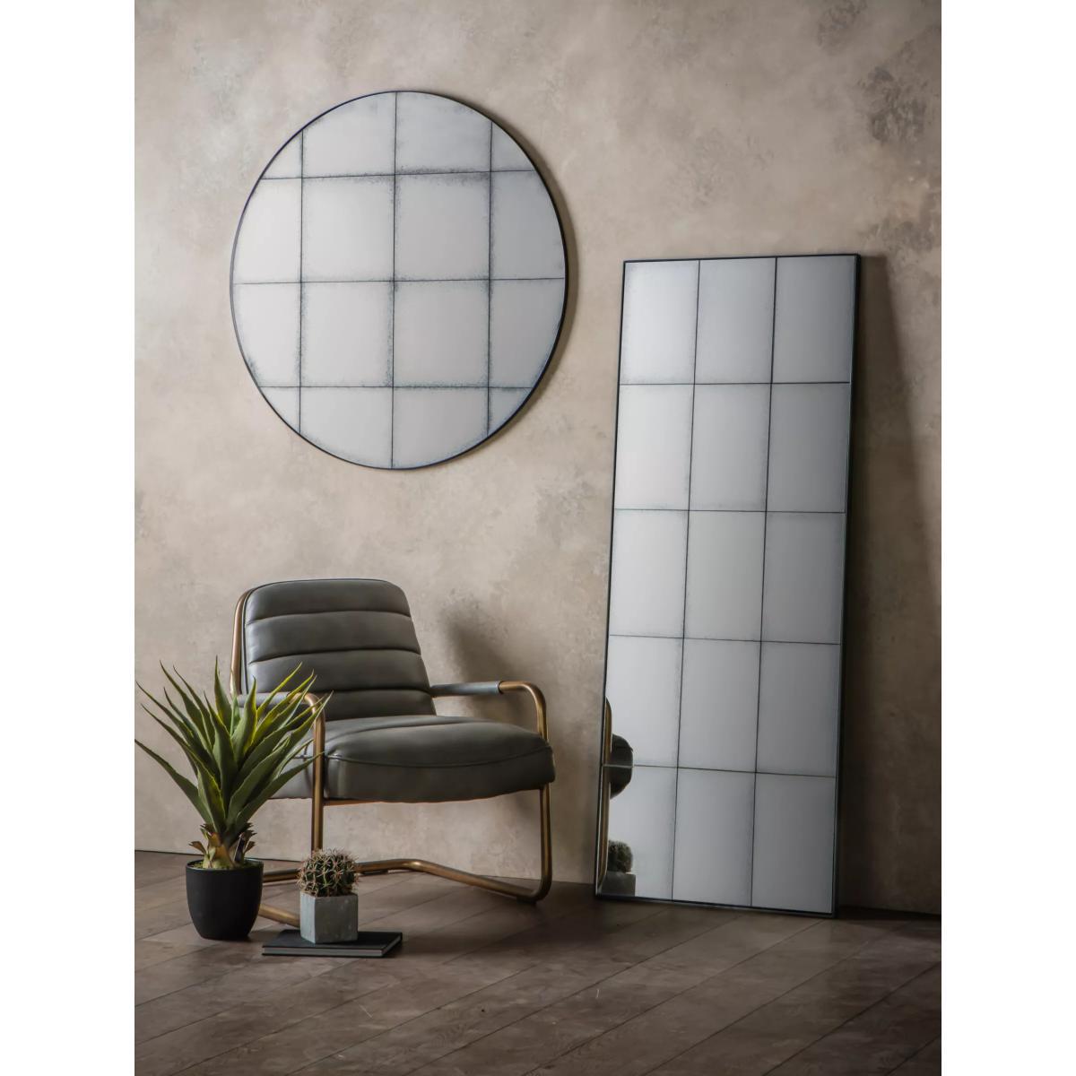Bastien Antiqued Glass Round Mirror, Dia.100cm, Black