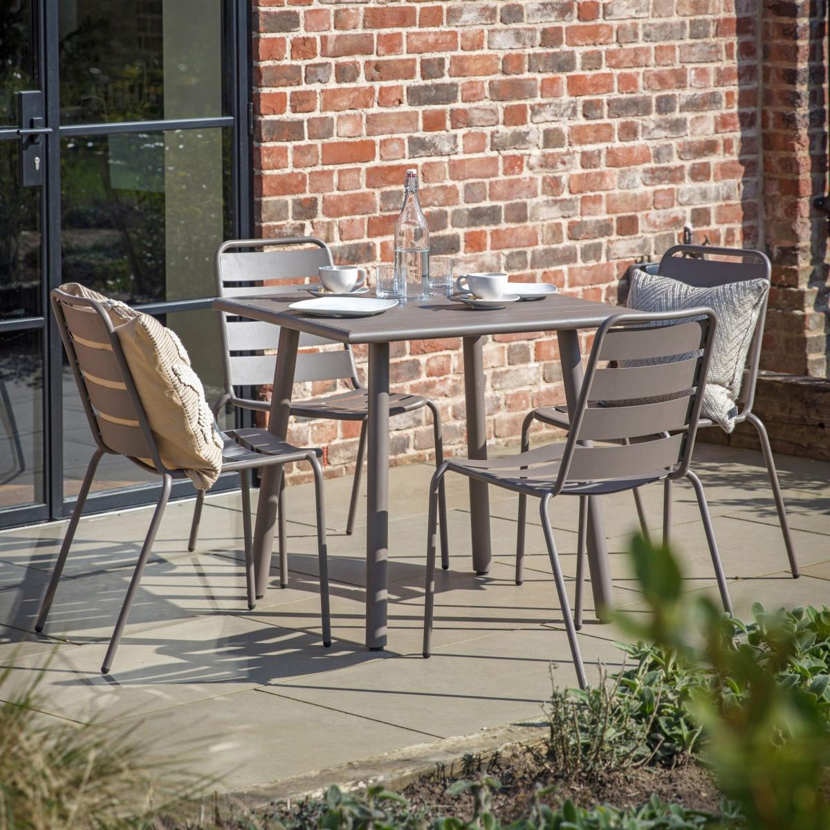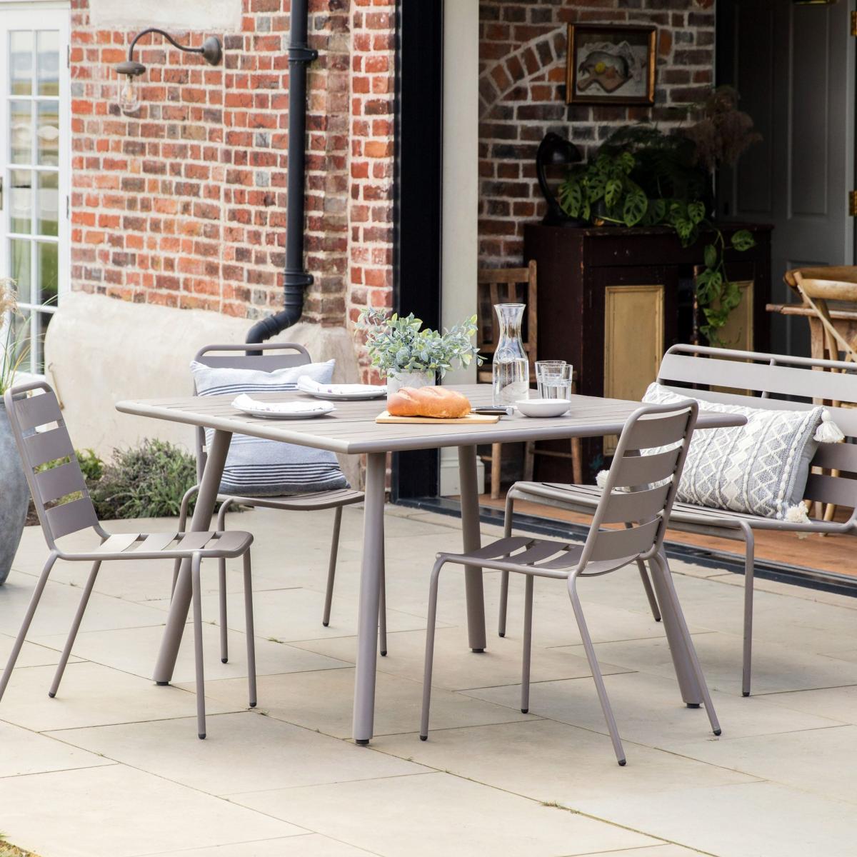 Ideal for outdoor living, the Bastin table is crafted from steel with a lovely, subtle warm grey finish.