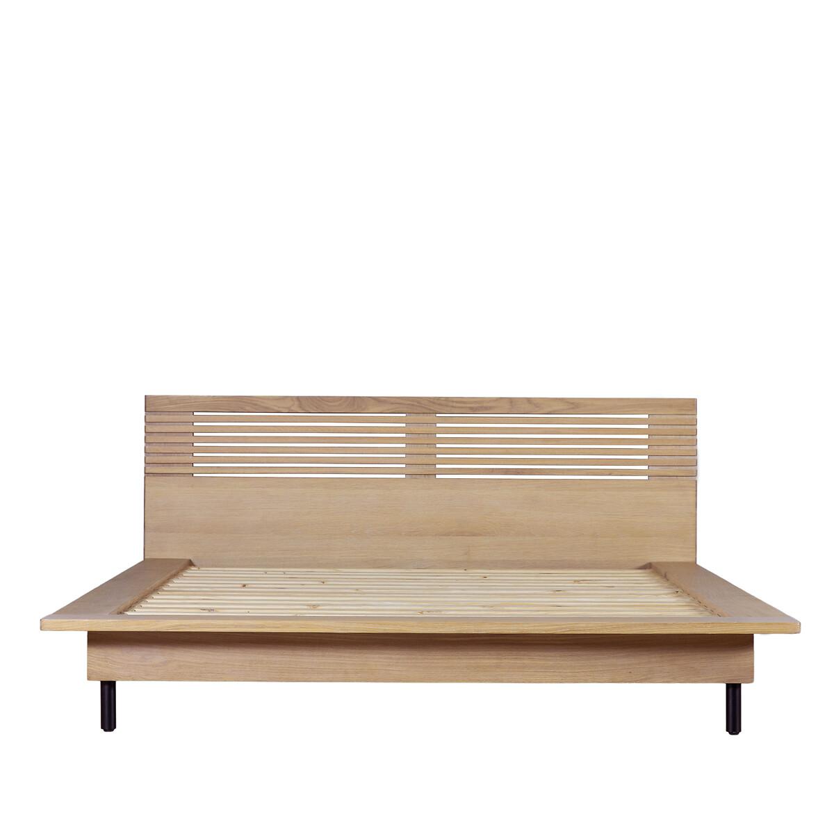This solid oak bed features a section of solid oak slats on the headboard styled for a minimalist Japandi style. Slim black metal legs at the foot end complete the look. Mattress not included, supplied with slatted base. Actual Sizes of Beds-L220 x W167 x H83cm (Double)L220 x W183 x H83cm (King)Mattress Sizes: 140 x 190cm (Double), 160 x 200cm (King), 180 x 200cm (Superking).Footboard Height - 0.1cm. Underbed Storage Height - 13cm Parcel Dimensions:Double:Box 1 - 177 x 91 x 11cm. Box 2 - 200 x 36 x29cm Box 3 - 140 x 29 x 9cmKing: Box 1 - 192 x 156 x 91cm. Box 2 - 210 x 35 x 29cm. Box 3 - 156 x 31 x 9cm. Full Assembly Required. Please note: this product cannot be delivered to all Offshore Islands, Northern Ireland or Republic of Ireland. This product will be dispatched by one of our trusted suppliers. You’ll be contacted by their selected courier about your delivery.