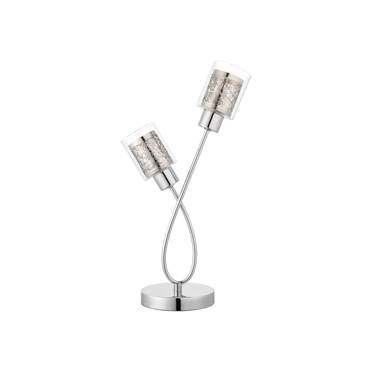 Gorgeous polished chrome table lamp boasting glass shades with chrome detailing. Update your interiors with the stylish Bateman Touch Table Lamp, a contemporary 2 light table lamp, exclusive to Pagazzi. Boasting a polished chrome frame, this table lamp features 2 glass cylindrical shades which enclose a small laser-cut, polished chrome shade which house the bulb. When lit the detailed shade casts beautiful light through the laser-cut design, creating an effective and decorative finish. A touch on/off table lamp perfect for finishing bedside tables, living rooms and hallway. Pagazzi recommends using our 3w G9 LED light bulbs which are a great replacement for standard halogen bulbs.