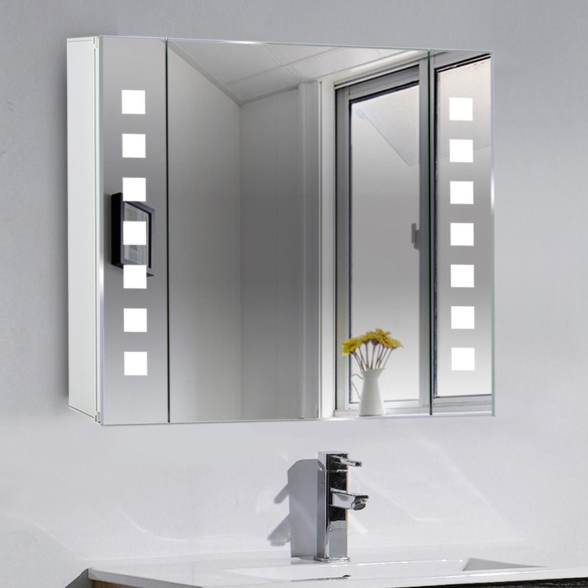 Bath Vanity Mirror Cabinet with LED Lighting - Silver