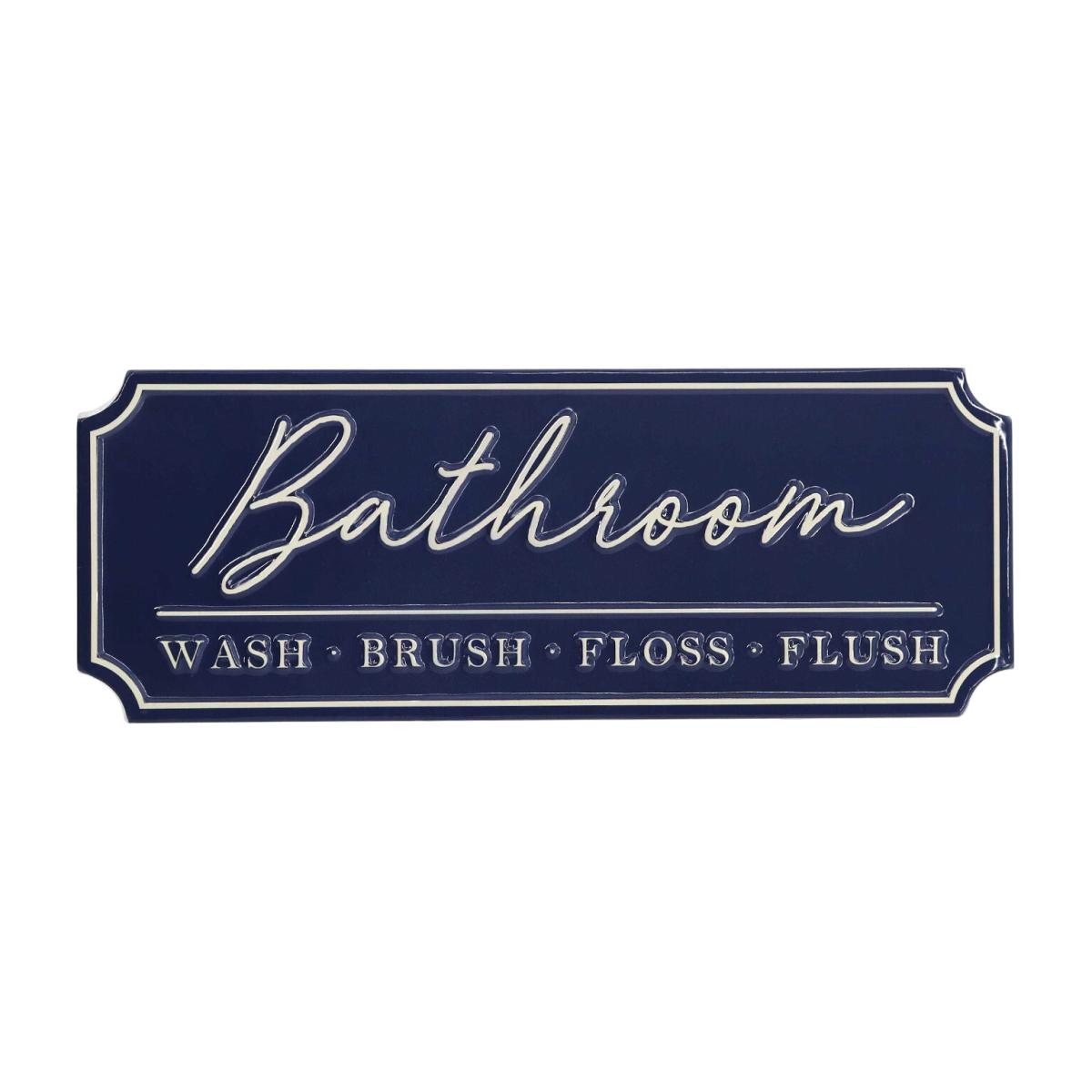 Bathroom Embossed Metal Plaque - Navy