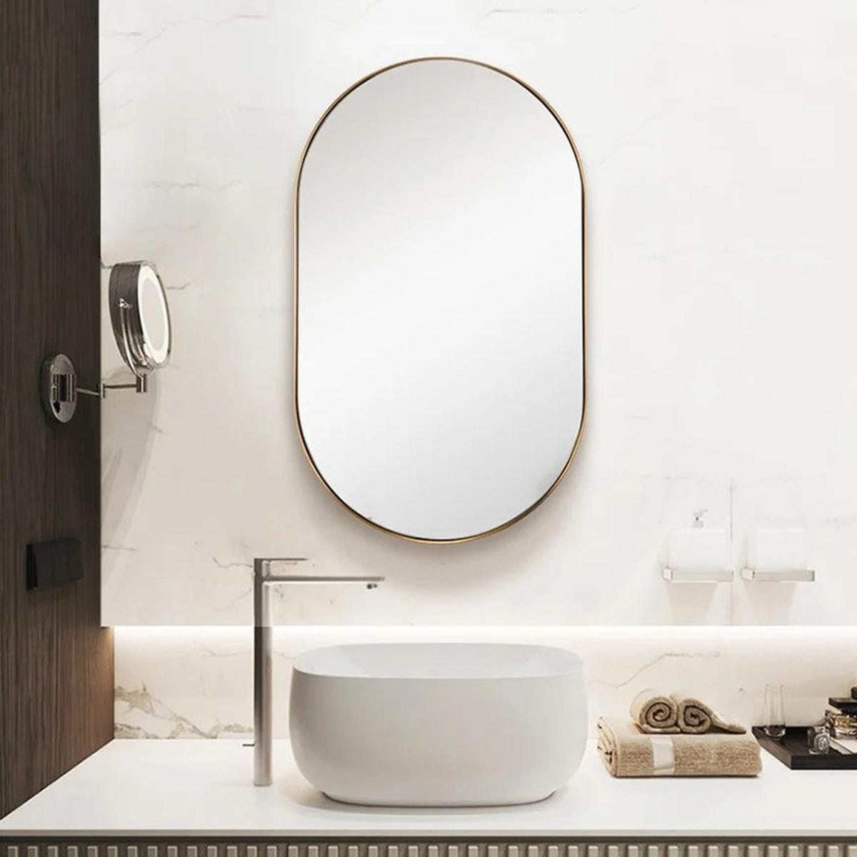 Made of premium glass with space aluminum material frame, guarantee the sturdiness and consistent aesthetic beauty of the design. Eye-catching wall mount design in oval shape, the frame colour is nice and subtle and does not stand out too much. The framed mirror will make you whole space look much wider, giving you a satisfying touch when looking at it. Highly reflective to catch as much light as possible, giving you the best reflection day and night. Well made and came with screws and wall plugs ready for hanging, very easy to install. Designed with mounting hole on the back of the mirror, very convenient to wall mount it with a screw or change its place as you need. Great as a wall mirror, hallway mirror, decorative mirror, makeup mirror, etc. The classic and simple appearance is perfectly integrated into various fashionable living environments, adding a rich Nordic and high-quality taste to your home.