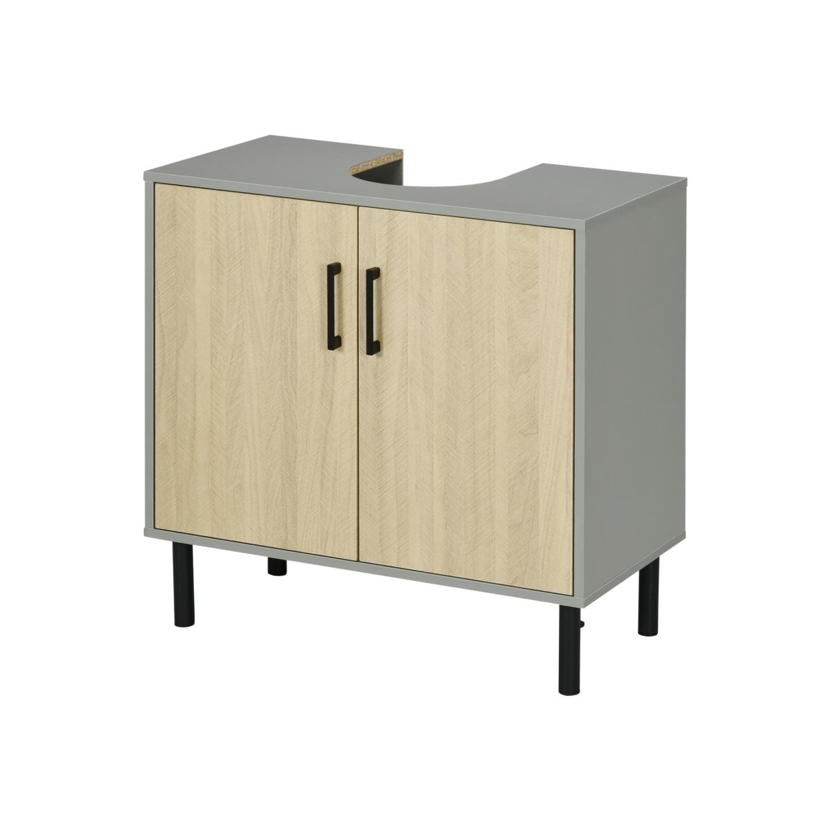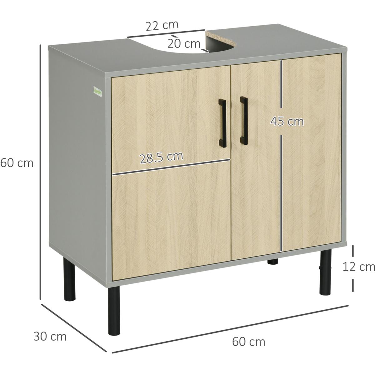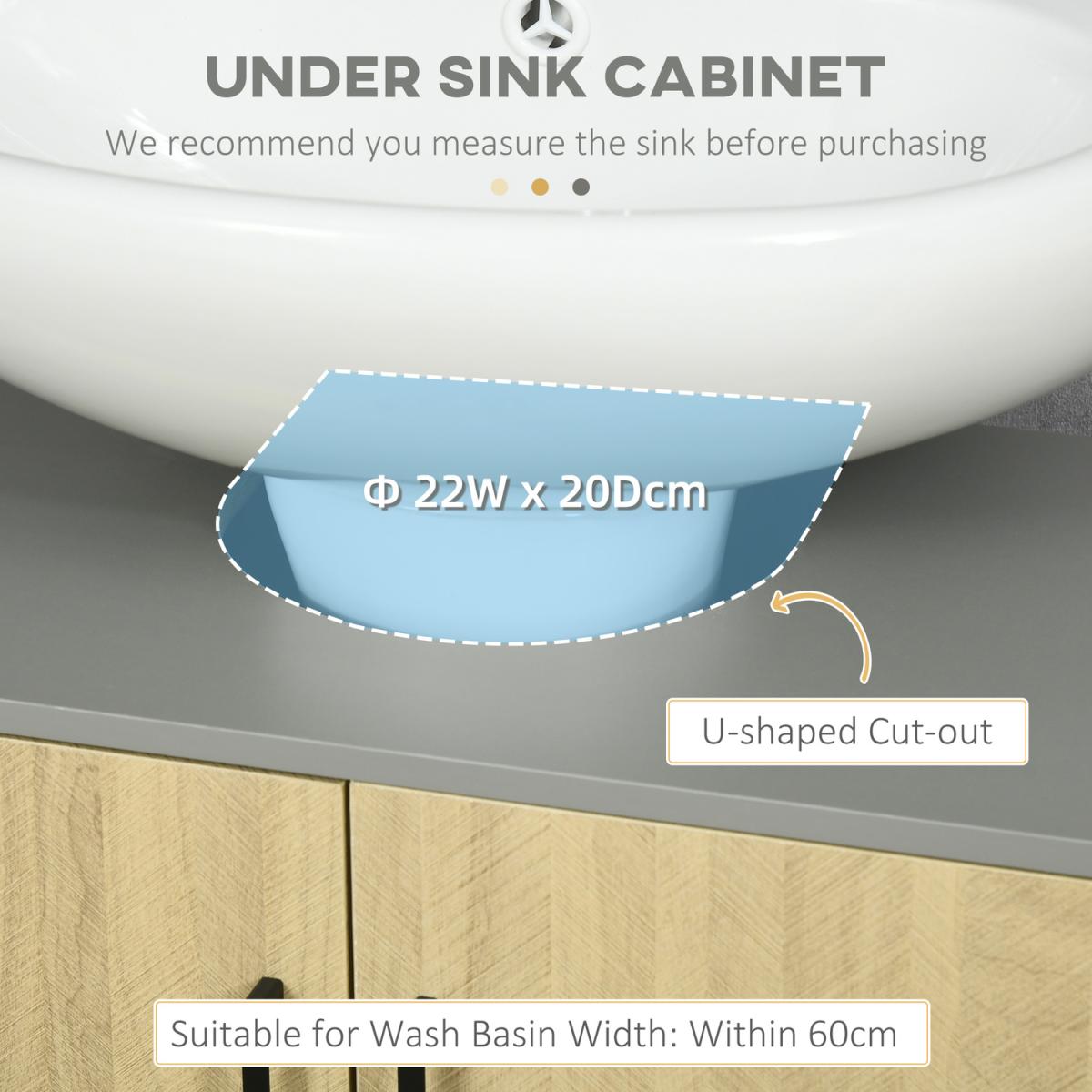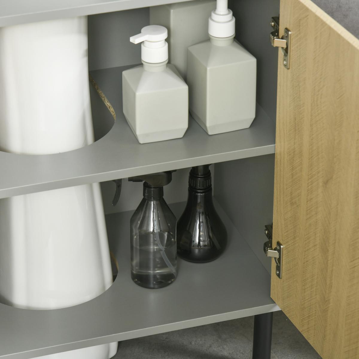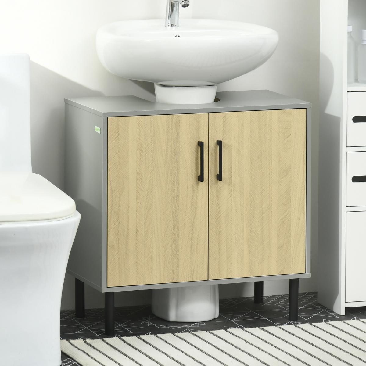 Bathroom Under Sink Cabinet, Basin Storage Cupboard with Double Doors - Grey, Yellow Oak