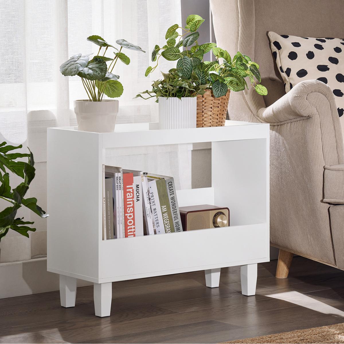 Modern design side table is a good choice for your bedroom, living room, etc. It features 2 storage shelves, offering plenty of storage and display space for you. 2 shelves: the top shelf is ideal for flowerpots, photos and other decorative items, while the lower shelf provides ample storage space for a variety of books. Item comes in a flat pack and requires self-assembly. Detailed instructions supplied.
