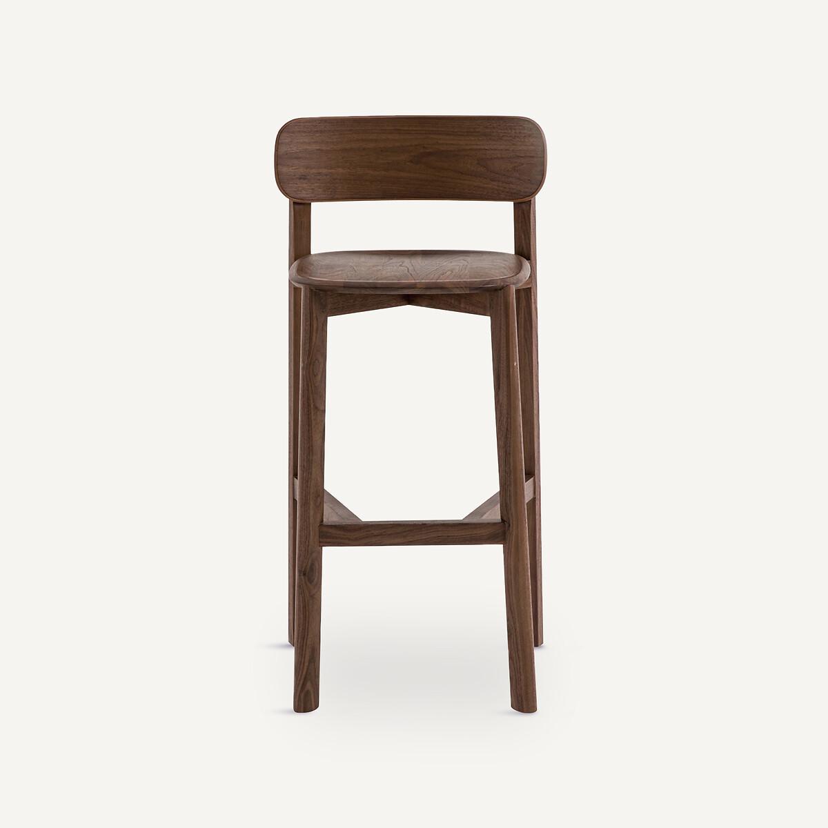 An Emmanuel Gallina creation, exclusively for AMPM. Batignolles is functional furniture with elementary shapes associated with assertive details. The Batignolles bar chair balances curves and beveled cylindrical sections. Product Details • Solid walnut seat and structure • Backrest in walnut veneered rubberwood plywood • Nitrocellulose finish • FSC® Mixed certified wood • Slightly hollow seat. Dimensions • Width: 50cm • Height: 99cm • Depth: 47cm • Seat height: 75cmDelivery:. Sold pre-assembled. Available for home delivery. Note! Please ensure all passageways and doorways are wide enough. • WOOD FROM MORE SUSTAINABLY MANAGED FORESTS AND CONTROLLED SOURCES. FSC® Mix wood contains at least 70% FSC® certified and/or recycled wood, the remainder being FSC® controlled wood. Dimensions and weight of parcel1 parcel • L104 x H53 x D56cm, 11.5kg