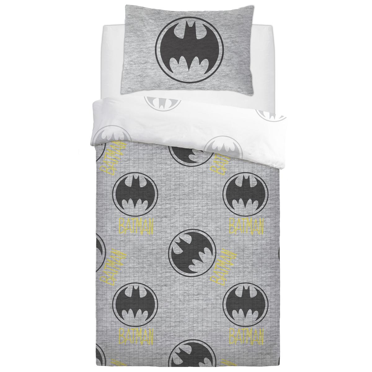 Batman Grey Logo Duvet Cover and Pillowcase Set - Grey