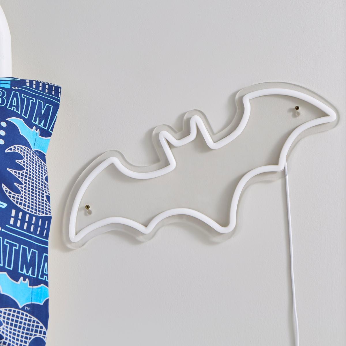 I love this bat-shaped neon wall light because it adds a playful yet contemporary touch to any space. It works particularly well in bedrooms, playrooms, or themed areas where a pop of colour and fun is desired. When styling, consider pairing it with minimalist or monochrome decor to let the blue glow stand out, or enhance a themed setting with other comic or superhero accents. Practical tip: Mount it at eye level or slightly above to create an eye-catching feature without overwhelming the room. Its vibrant hue makes it an ideal statement piece for a fun and youthful interior.