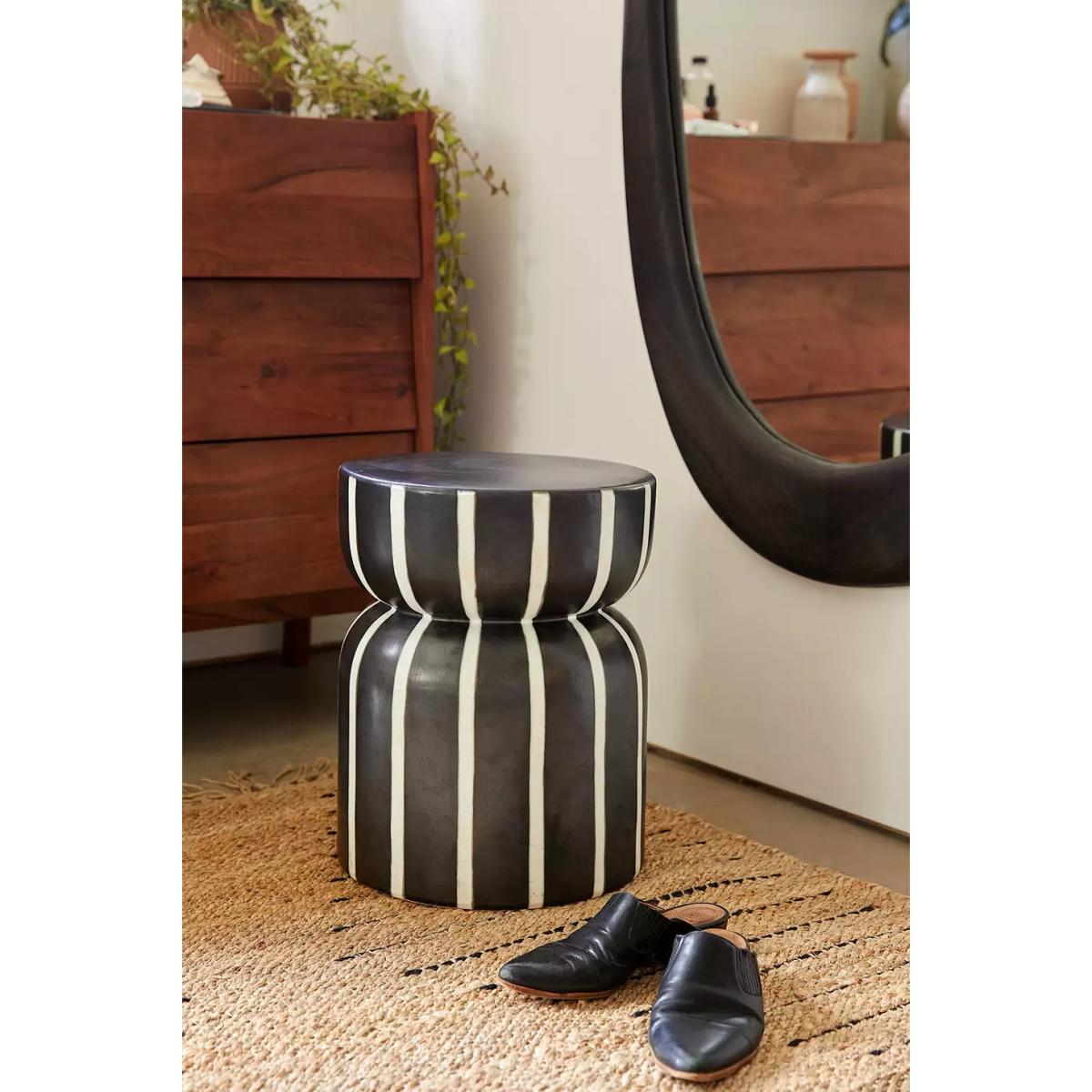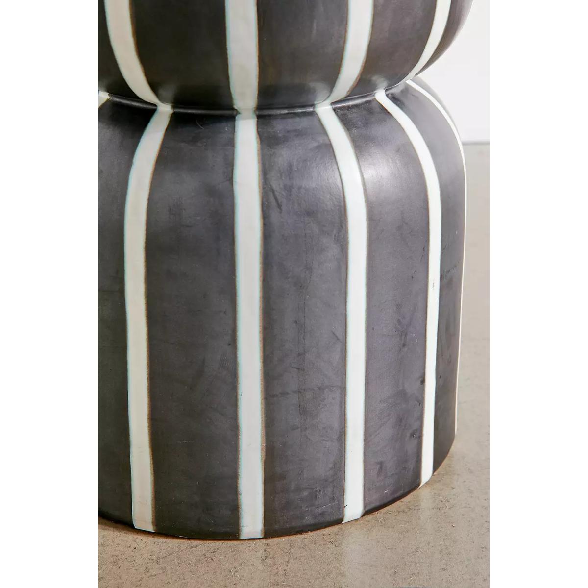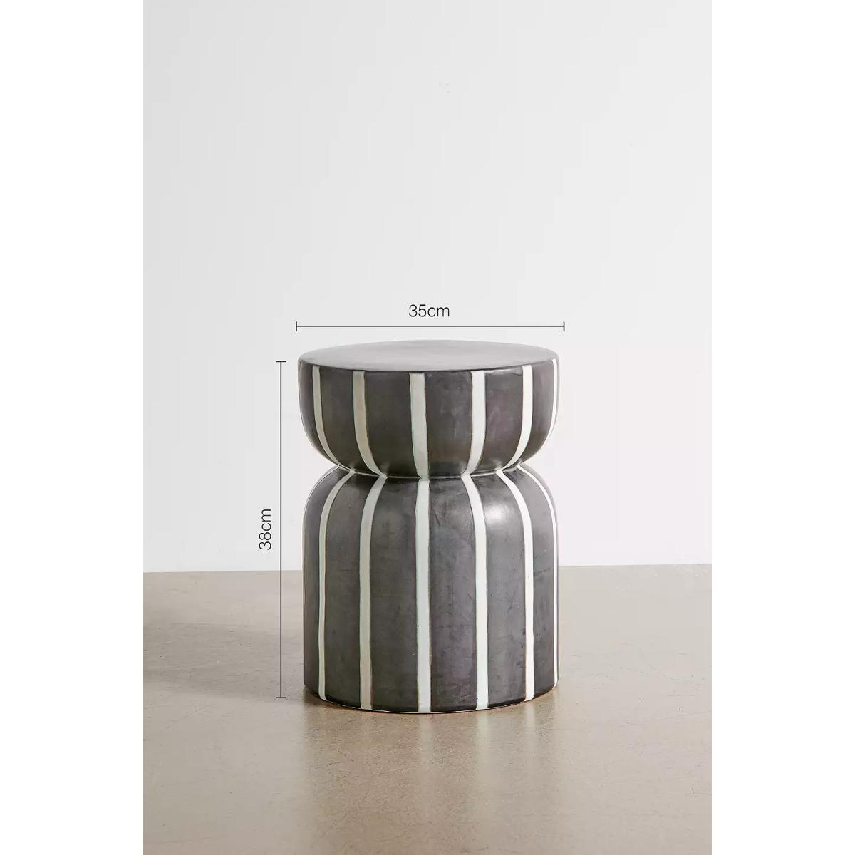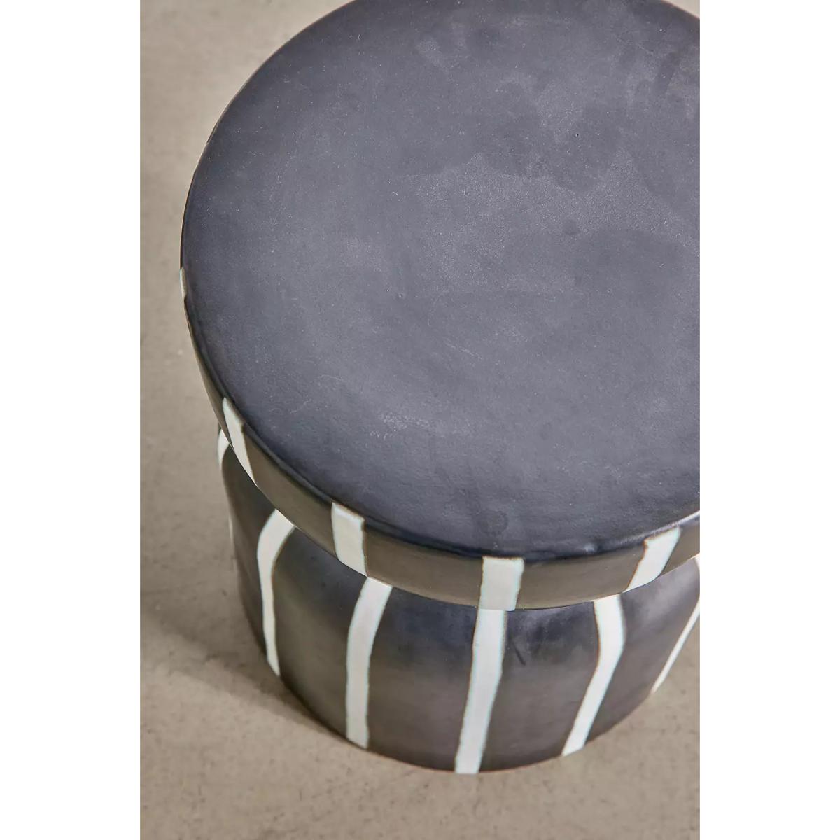 Eclectic side table, made from a ceramic and glaze construction. Shaped as two cylindrical pieces on top of each other and finished with a vertical stripe effect, this piece can fit different decorations and living spaces. _Online return only. This item cannot be returned in-store. _ _Please note furniture items currently cannot be shipped to Northern Ireland or The Republic of Ireland. Delivery of large furniture items may take 1-2 weeks and are therefore not eligible for Next Day Delivery._ **Content + Care** \- Clay, glaze \- Wipe clean **Size** \- D: 37.9cm x H: 35cm \- 9.5Kg