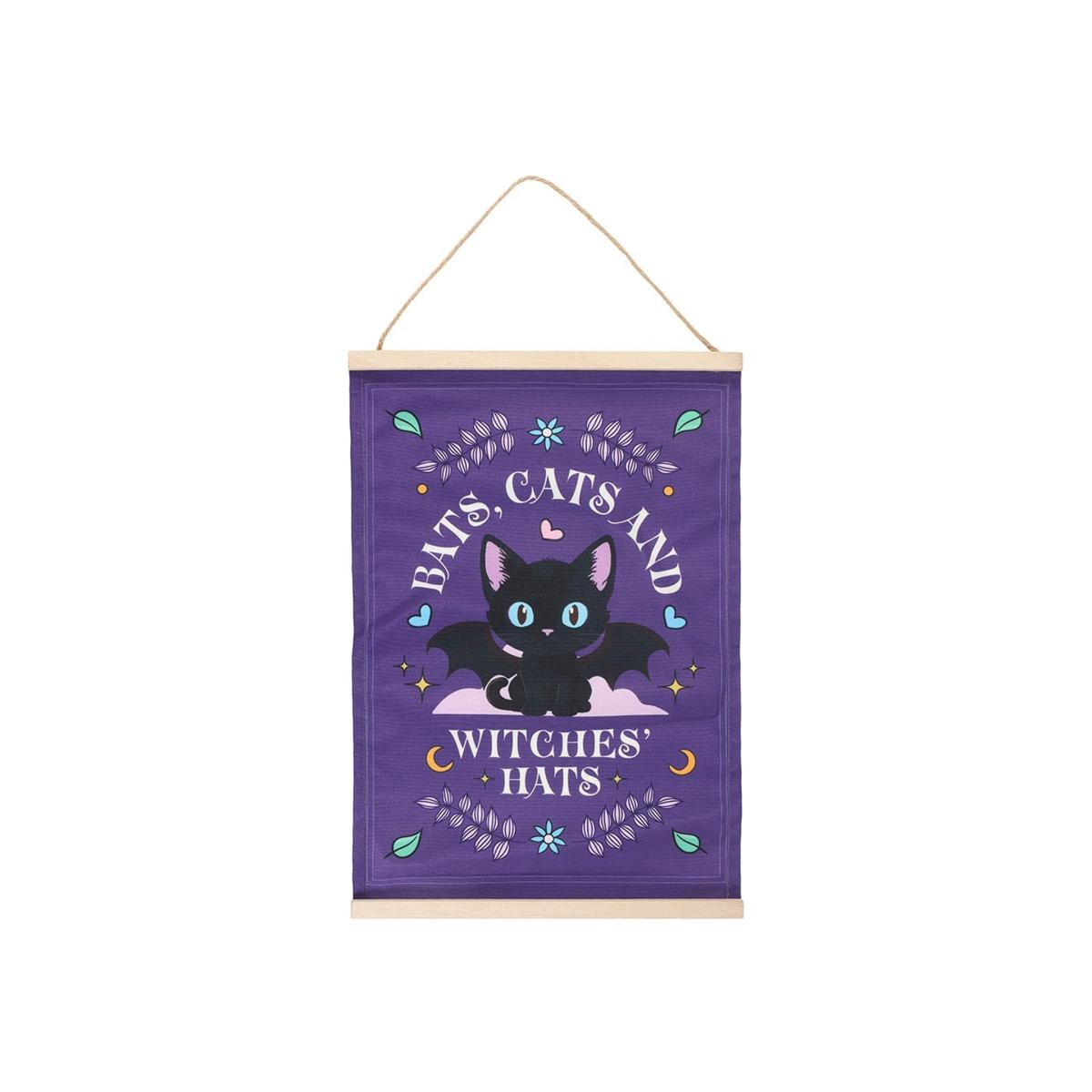 Bats, Cats and Witches Hats Fabric Wall Hanging - Purple