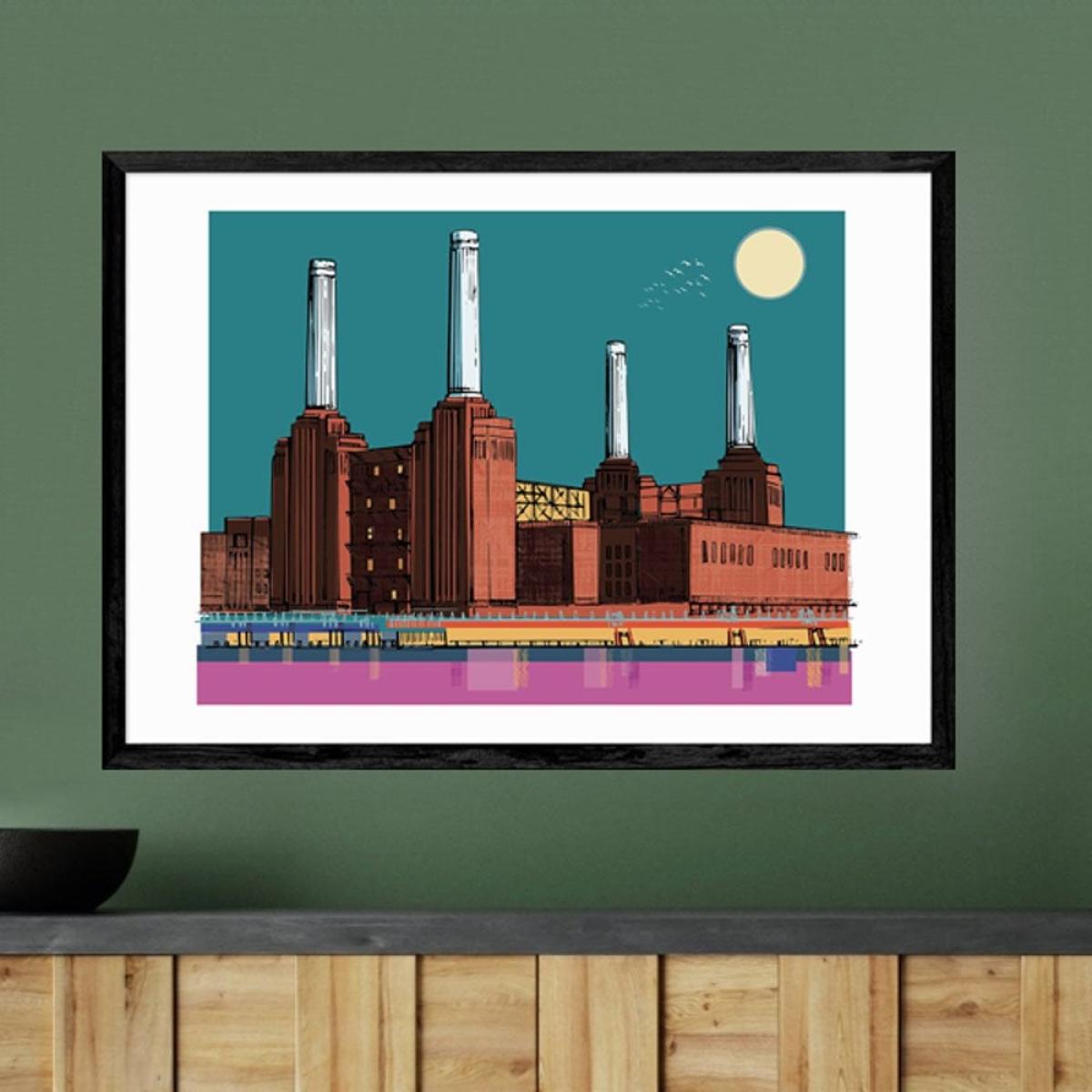 Celebrating the structural delights of the Battersea Power Station, this graphic print uses a intriguing and alluring use of colour, depicting this famous building as you've never seen it before. Only giclée printing processes are used for this print resulting in the highest quality museum-level colours and sharpness. Choose between a number of different coloured frames and three sizes for the perfect print for your space.