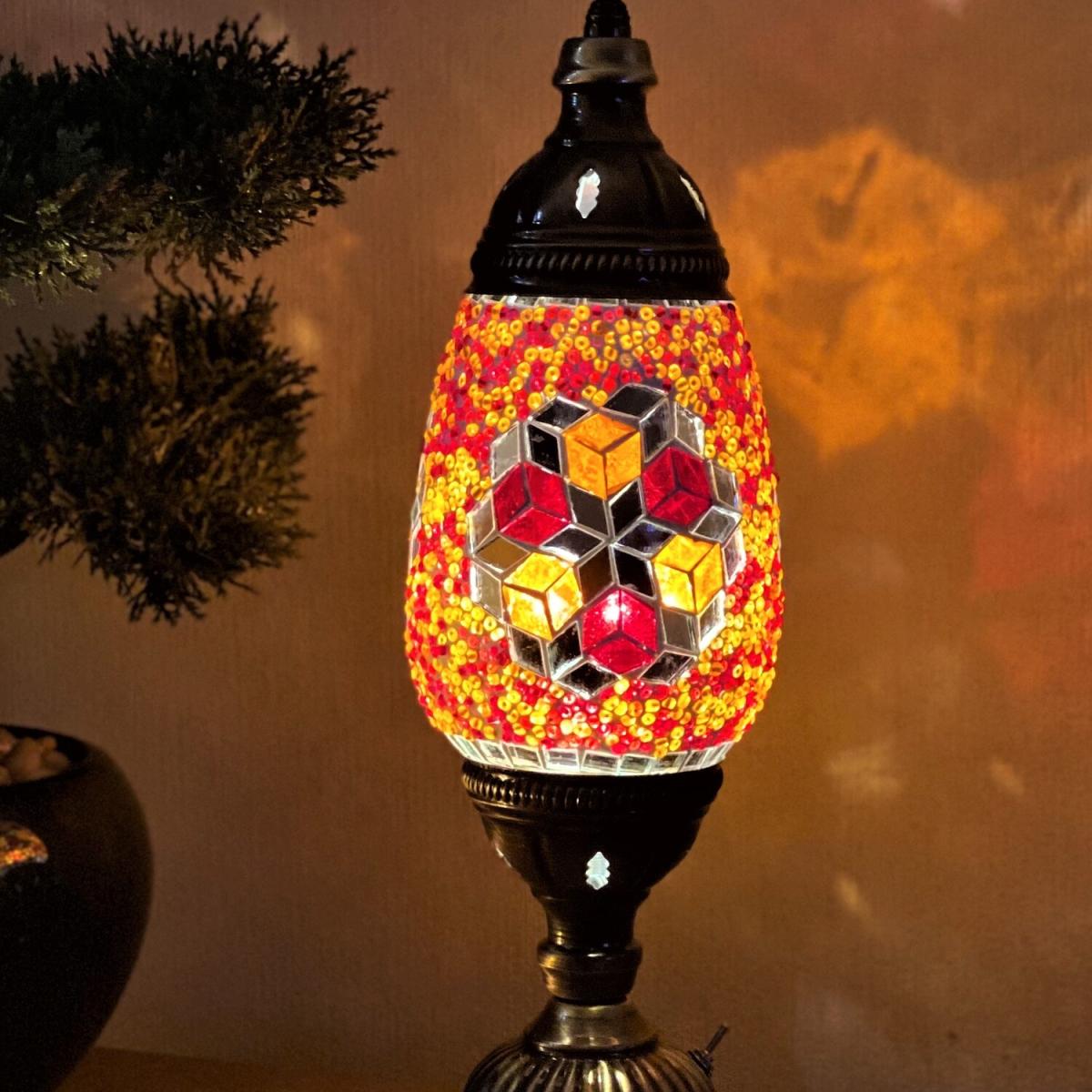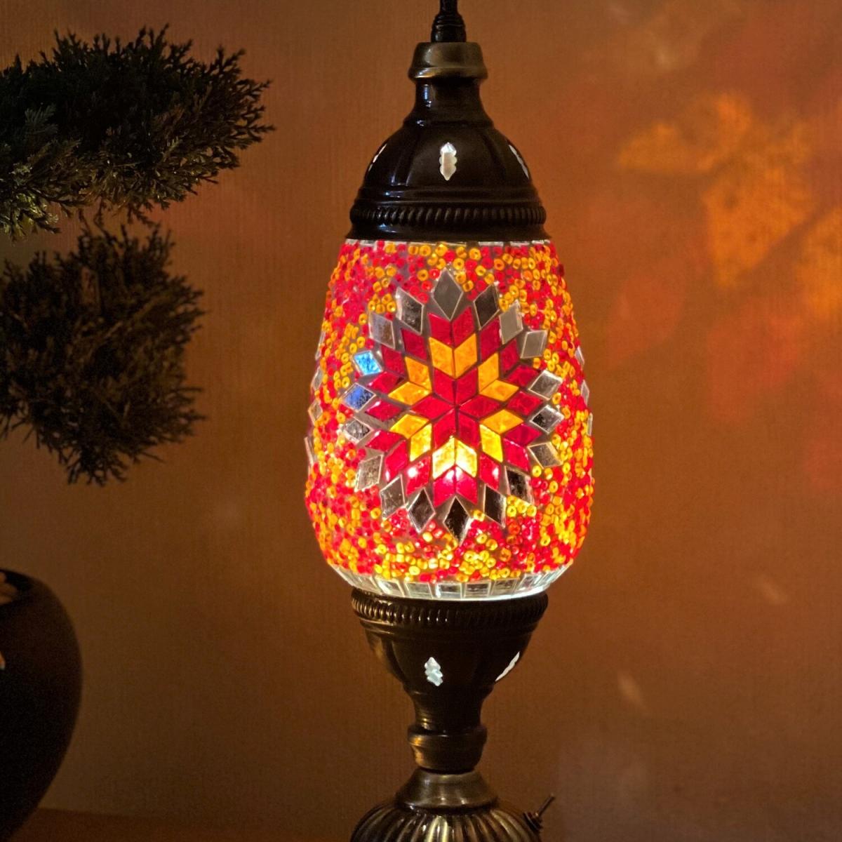 These beautiful Turkish Lamps create a vintage feel within your home and add a traditional touch of eastern beauty by displaying vivid, glittering colours. The patterns made by the coloured glass and beads represent Turkeys pride and power, blended with the flamboyant nature of their culture. Hand made in Turkey, these lamps are available in a variety of colours. The metalwork is machined by hand, and all glass and beads are fixed by hand.