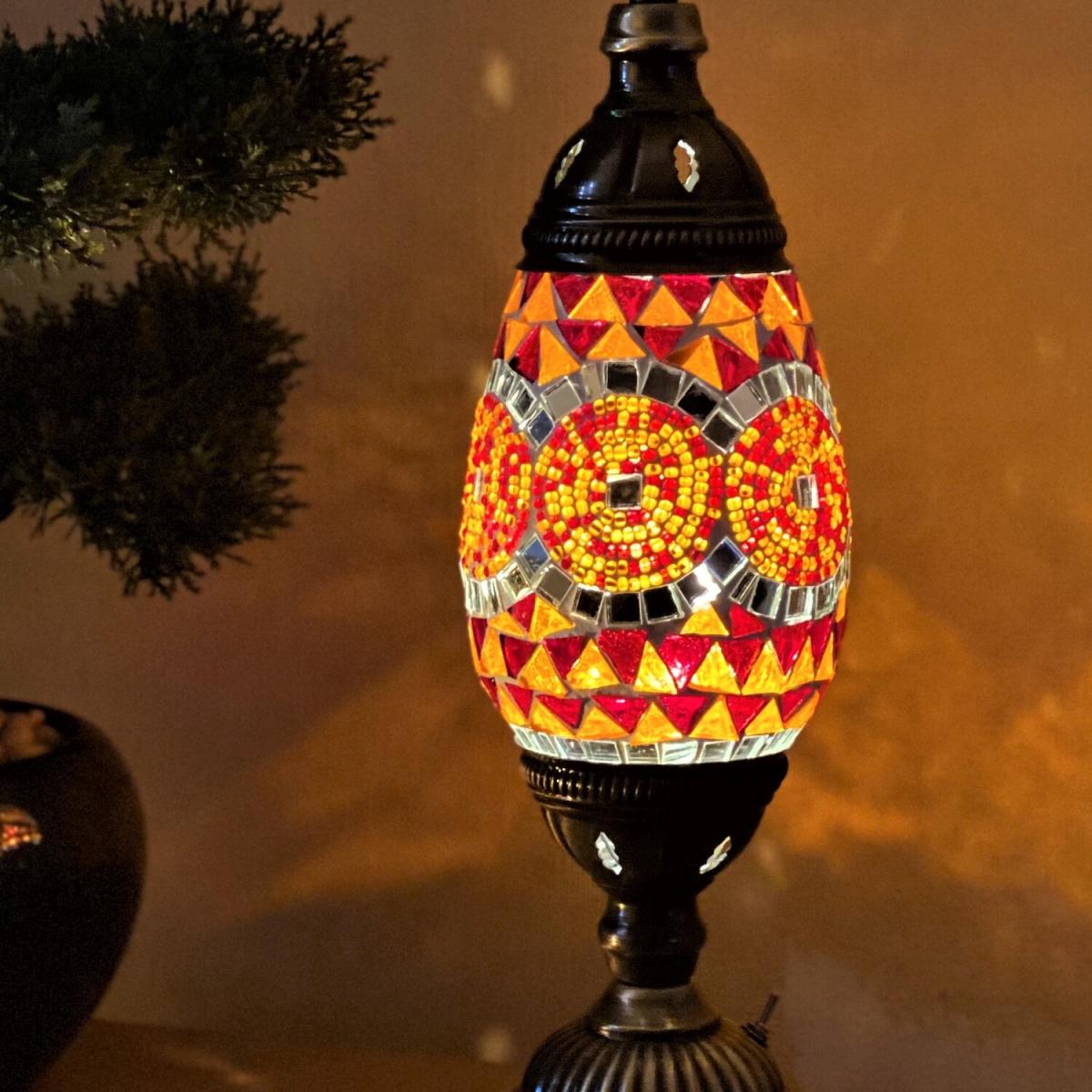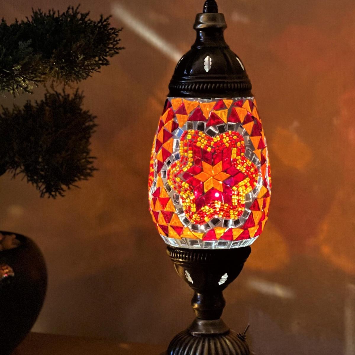 I love the Battery Lamp Mosaic Glass Flute for its vibrant colour palette and striking mosaic design, which makes it a fantastic statement piece in both eclectic and bohemian interiors. Its warm reds and oranges are perfect for creating cosy atmospheres, especially when grouped on a side table or shelf in living rooms or bedrooms. To style it effectively, consider pairing it with neutral or earthy tones to let the colours pop, or combine it with other textured elements like woven throws or wood accents for a layered look. This lamp works particularly well in spaces where you want to add a touch of colour and cultural flair, and it’s equally eye-catching as a standalone feature during evening hours.