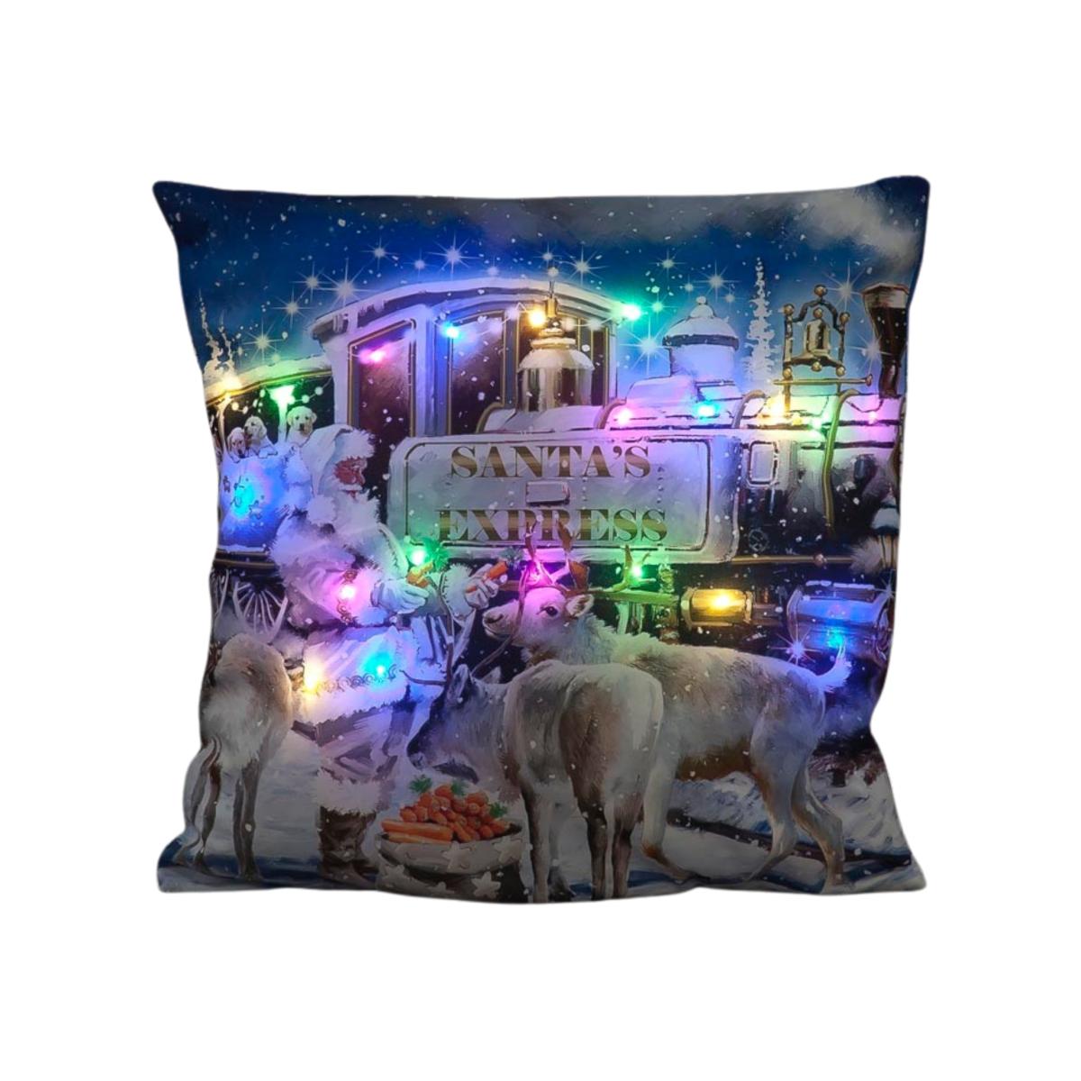Introducing the Battery Operated Santa Express LED Cushion: a festive and enchanting addition to your holiday decor. This charming cushion features a delightful Santa Express design, complete with integrated LED lights that bring a warm, cheerful glow to your home. Perfect for adding holiday spirit to your sofa, bed, or favourite chair. Measuring just right for cosying up, the Santa Express LED Cushion is crafted from soft, high-quality materials, ensuring both comfort and durability. Brighten up your holiday season with the Battery Operated Santa Express LED Cushion. Combining festive design with convenient functionality, it's the perfect accessory to create a magical and inviting atmosphere for all your holiday gatherings.