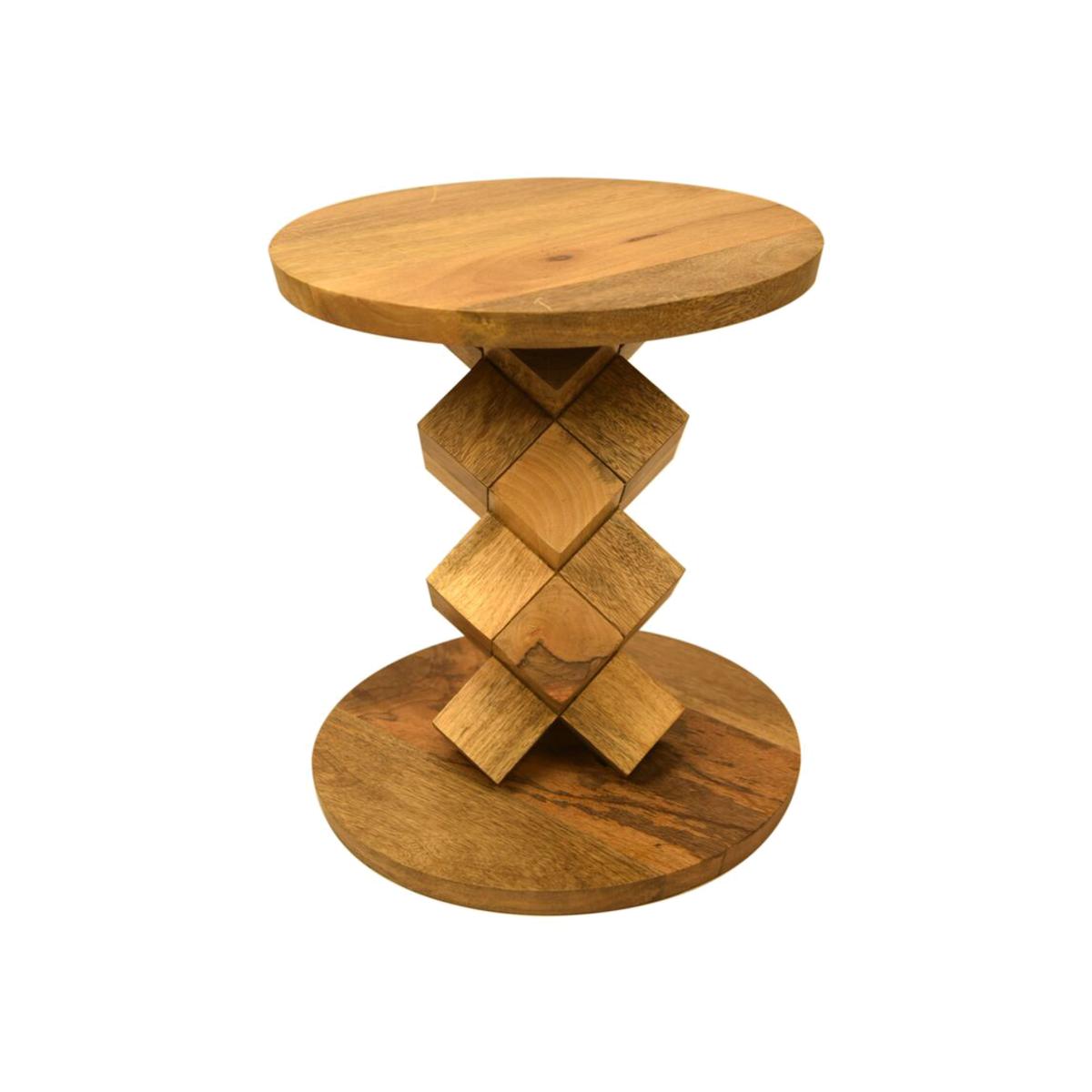 The small side table in a cubic design is a real eye-catcher. The pillar of the table has the appearance of consisting of numerous cubes stacked on top of each other. This cubic column contrasts nicely with the table top and base, both of which are round. Due to its unusual appearance, it becomes a real eye-catcher in your home. The table is made of FSC-certified solid mango wood.