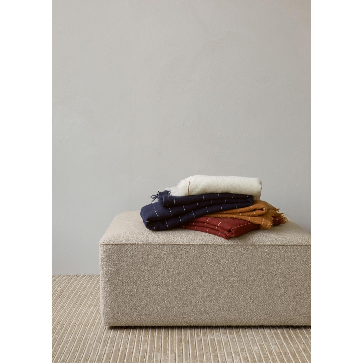 Battus blanket 130x185 cm from Danish brand Menu is a high-quality blanket made of Italian wool that's interwoven with silk. The woollen blanket's silk stripes create a beautiful pattern, and it has tassels on the short and long sides.