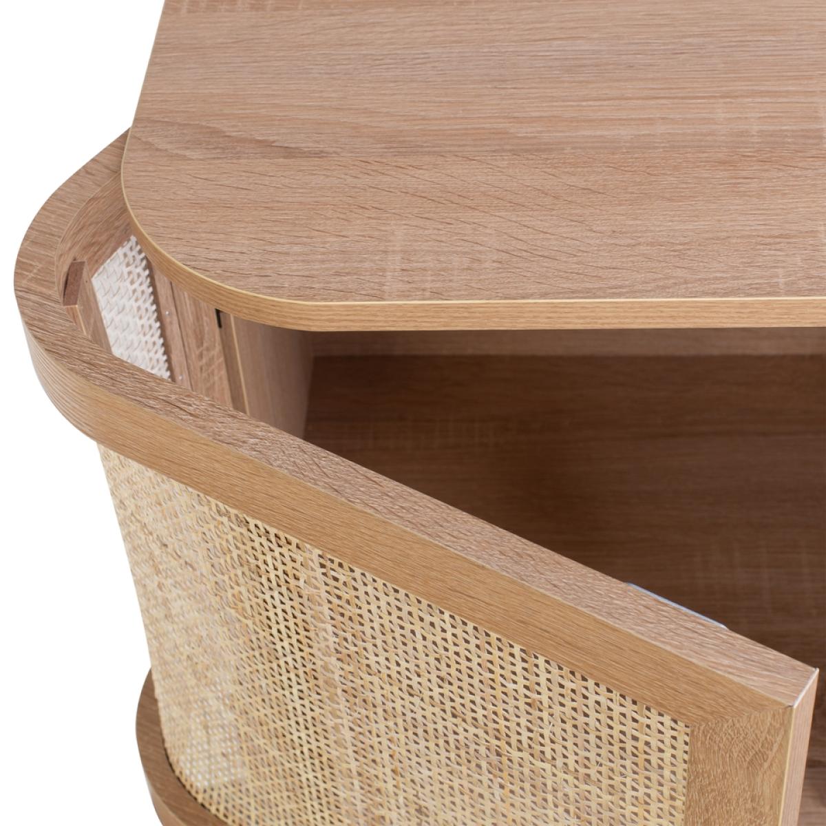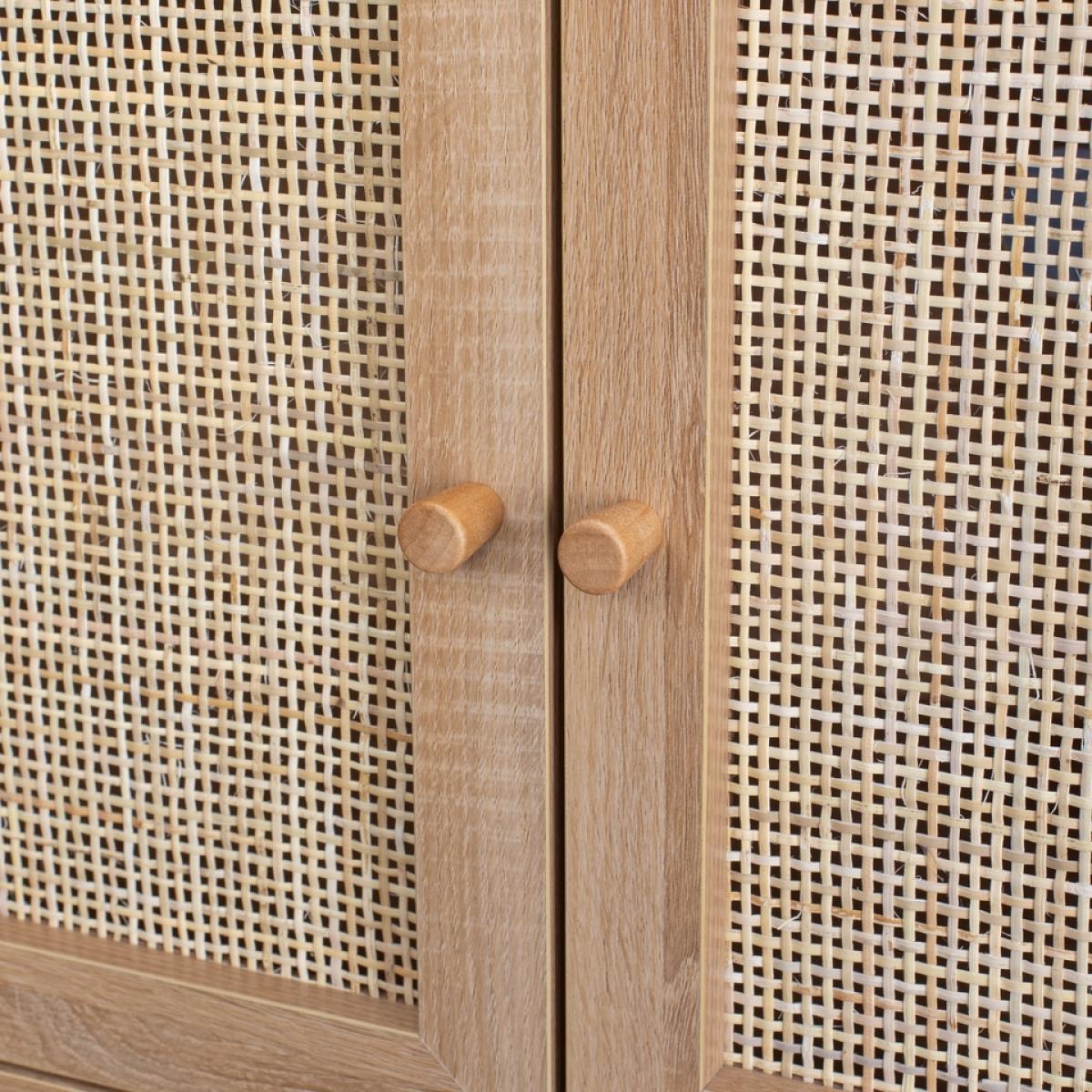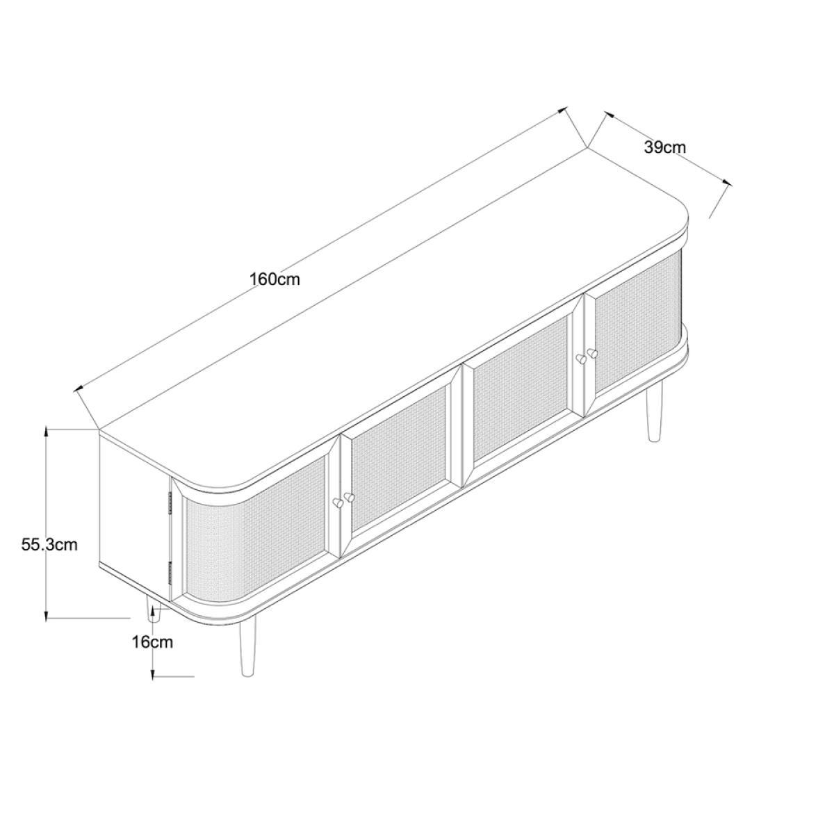 Batu is bringing retro back. Real woven cane doors and smooth, curved corners, this is a combination we can get on board with! The Batu TV stand is complete with clean lines giving it an elegant silhouette. The oak effect finish give a light minimalist feel while the rattan effect door fronts add texture and a distinctive look. The four doors hide two storage compartments that provide ample space along with two rear cable holes, allowing you to organise your media devices and cables neatly.