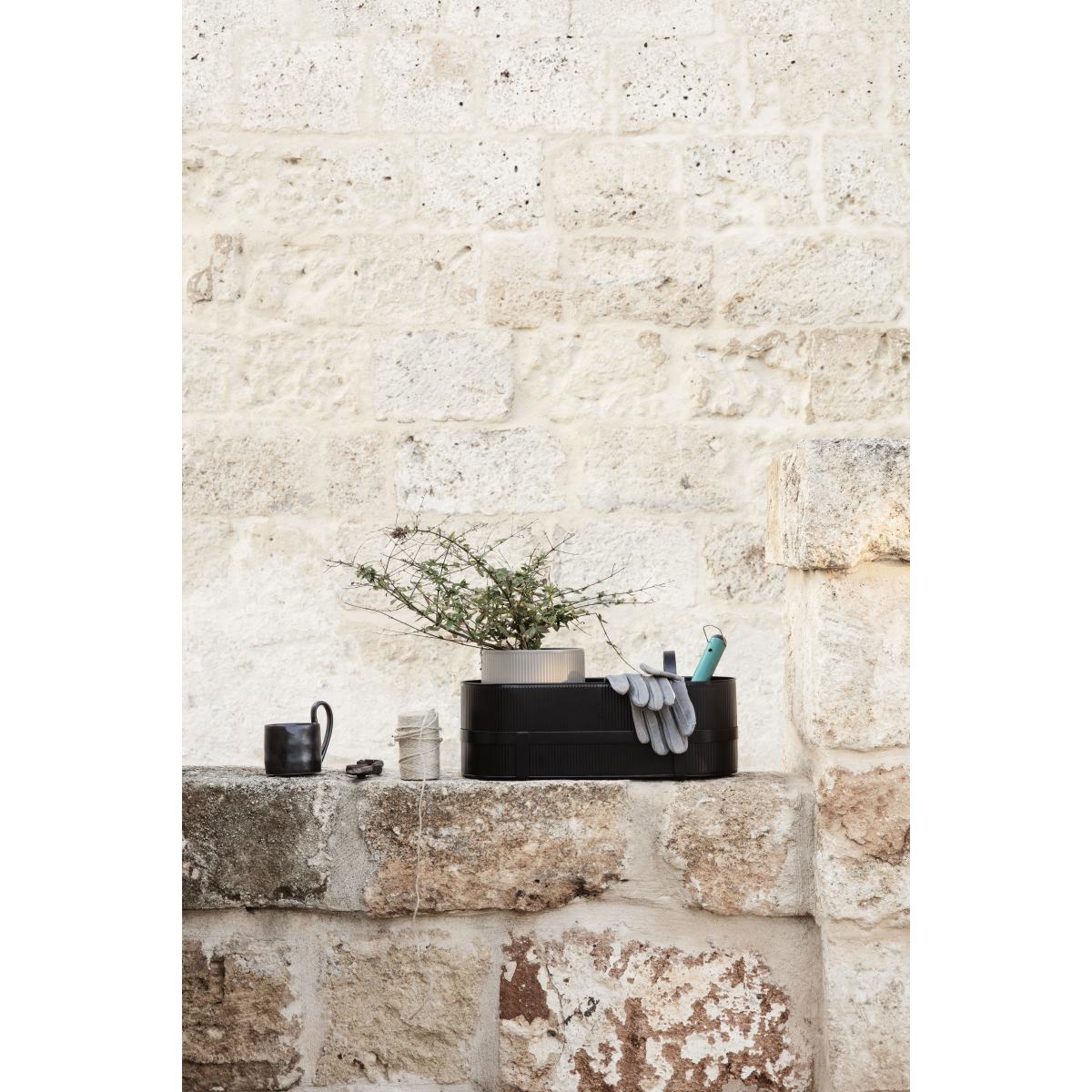 Bau is a collection of flowerpots and metal watering cans with formal, refined lines inspired by the Bauhaus world. The surface of the metal is textured, decorated with a multitude of rectilinear striations. The bracket means you can install the planter on your balcony to create a garden area, even in a very limited space. You can create beautiful plant compositions by mixing the colours and sizes of the pots. Made of galvanised steel, you can use Bau pots inside and out.