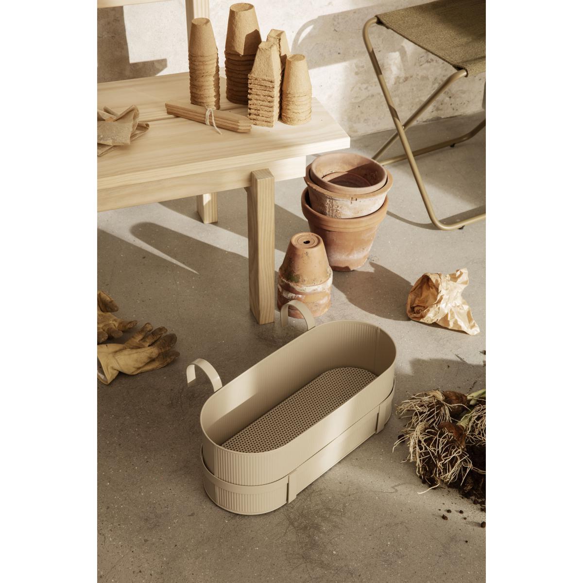 Bau Flowerpot - / With bracket - Metal / L 45 cm by Ferm Living Beige