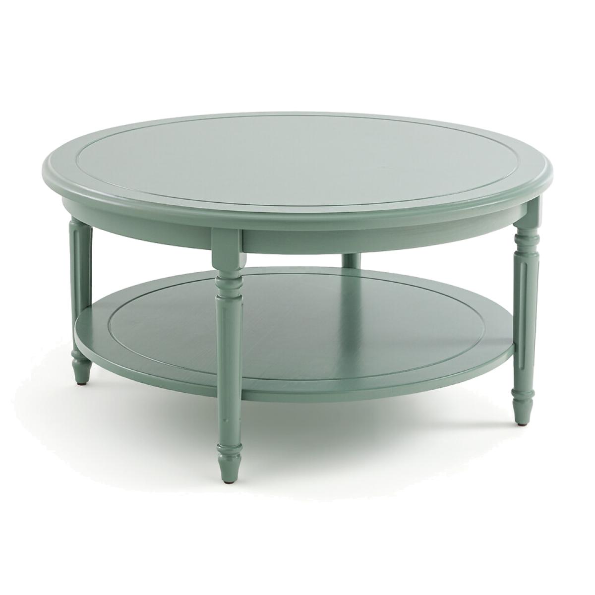 Soft colours, turned legs, revisited classic lines... Inspired by winter garden furniture, the Baudry collection reflects the sweetness of life in traditional country houses.. Designed by La Redoute Interiors. Product Details • 2 tiers • Painted MDF tops, acrylic finish • Turned base in FSC® solid pine. Dimensions • Diameter: 88cm • Height: 43cm • Assembly required. • WOOD FROM SUSTAINABLY MANAGED FORESTS. FSC® certified wood comes from forests that are environmentally, socially and economically well managed. Dimensions and weight of parcel • 1 parcel • L101.5 x H16 x D100.5cm. 24kg.