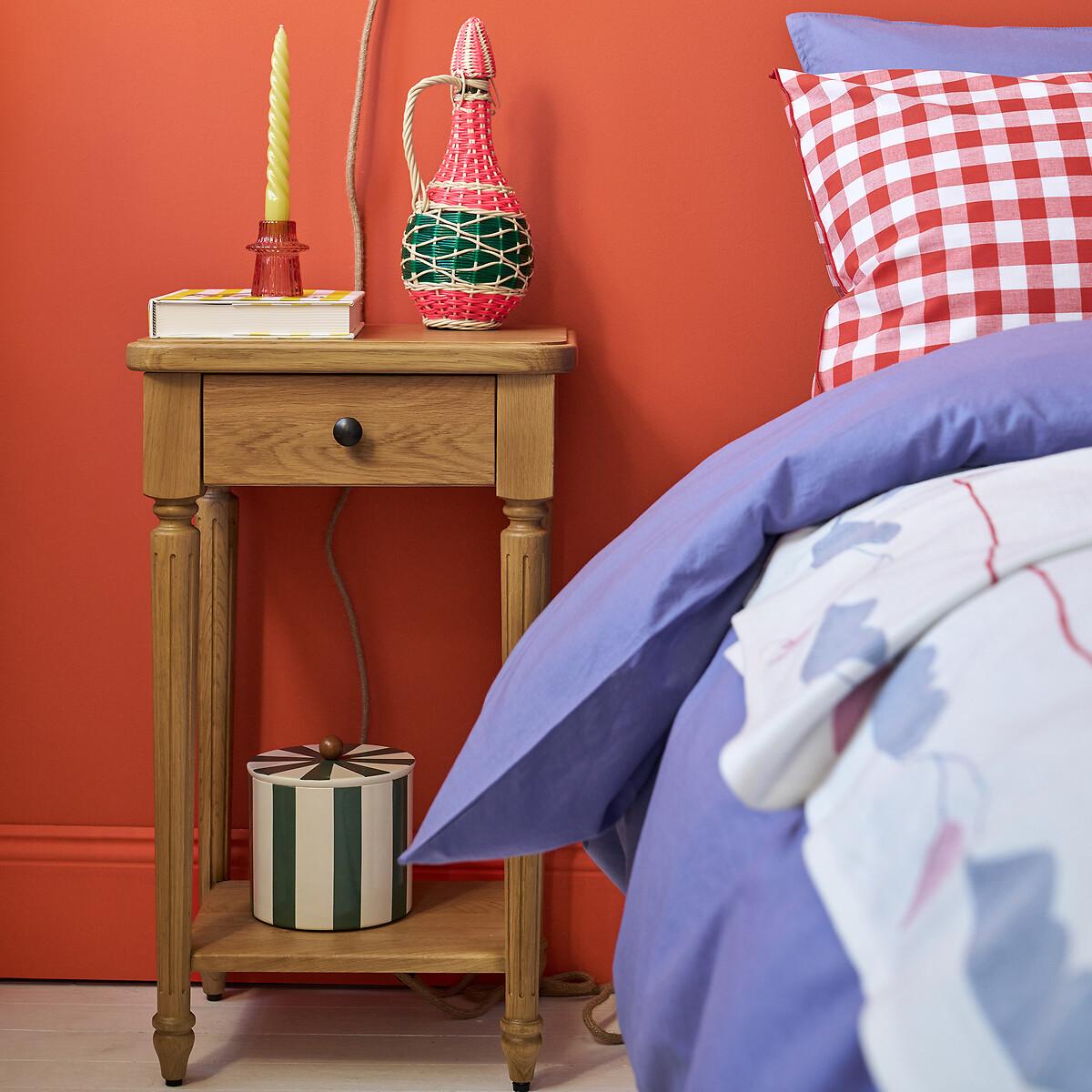 I love this little oak bedside table for its classic, timeless appeal and versatile style. It works beautifully in both traditional and Scandinavian-inspired interiors, thanks to its natural wood finish and simple lines. For styling tips, consider pairing it with textiles in earthy tones or soft neutrals to enhance its warm, organic feel. Its drawer provides practical storage for essentials, while the lower shelf is perfect for books or decorative accents. To keep the look fresh, you can add a small table lamp, a vase with fresh flowers, or even a favourite photograph to create a cosy, functional bedside setup.