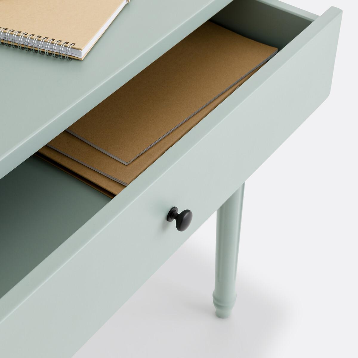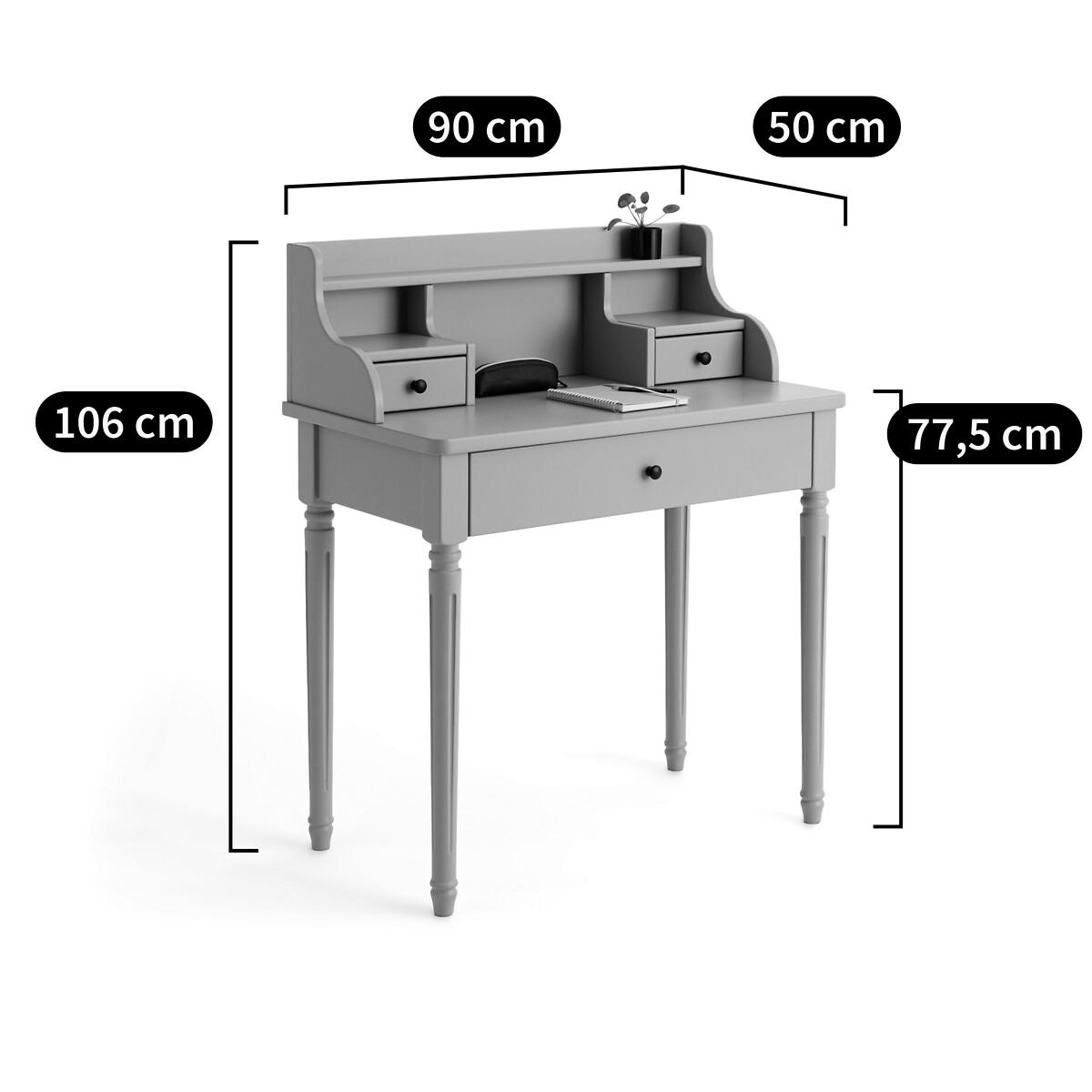 Elegant and romantic. The Baudry range has the style of reissued classic furniture, as if inherited from the past. Bringing timeless charm to your home. Created by La Redoute Interiors. Product Details • In solid pine and lacquered MDF, acrylic finish • 1 large drawer under the table top • 2 small drawers and raised niches • Metal knobsDimensions. Overall • Width: 90cm • Height: 106cm • Depth: 50cm • Table height: 77.5cm • Weight: 23.3kg. Usable space • Large drawer under desktop: L69.4 x H7 x D34cm • Small drawers :L18.8 x H7 x D16.8cm • Unit: L90 x H28 x D29.8cm • Assembly required. • WOOD FROM SUSTAINABLY MANAGED FORESTS. FSC® certified wood comes from forests that are environmentally, socially and economically well managed. Dimensions and weight of parcel1 parcel • L100.5 x H19.5 x D60.7cm. 27.9kg