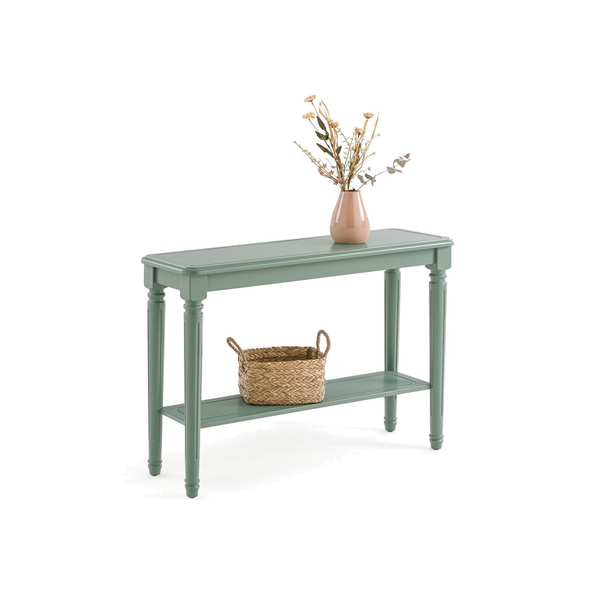 Soft colours, turned legs, revisited classic lines... Inspired by winter garden furniture, the Baudry collection reflects the sweetness of life in traditional country houses.. Designed by La Redoute Interiors. Product Details • 2 tiers • Painted MDF tops, acrylic finish • Turned base in FSC® solid pine. Dimensions • Width: 110cm • Height: 80cm • Depth: 35cm • Height between tiers: 46cm • Assembly required. • WOOD FROM SUSTAINABLY MANAGED FORESTS. FSC® certified wood comes from forests that are environmentally, socially and economically well managed. Dimensions and weight of parcel • 1 parcel • L122 x H16 x D46cm. 18kg.