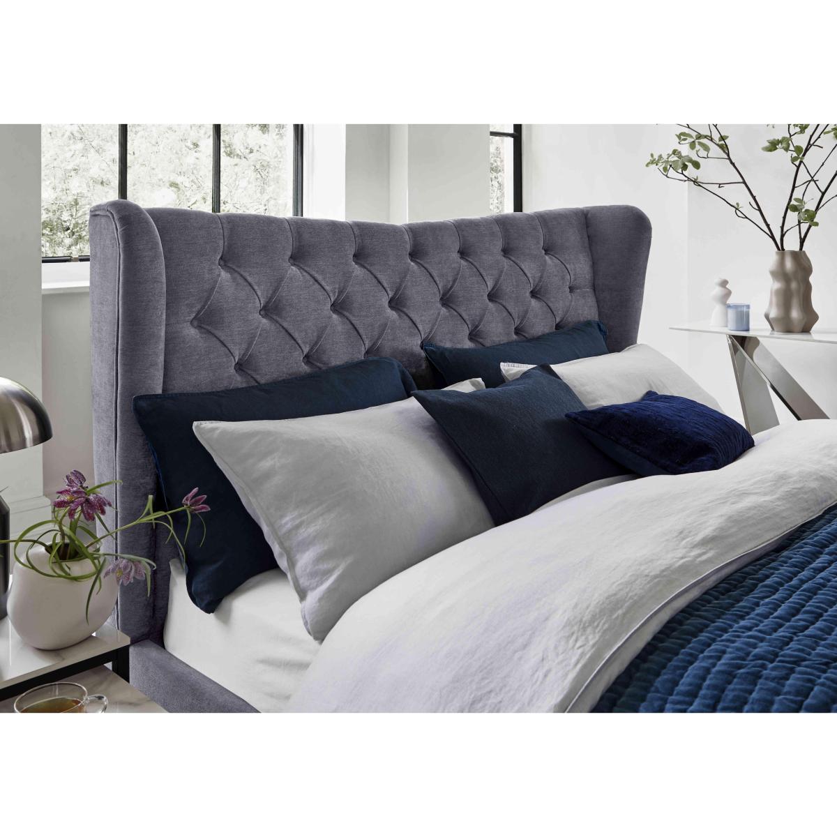 We love everything about this fabulous ottoman bed frame. It looks fabulous and that headboard is a real showstopper. And the ottoman storage space is just so roomy. Why you'll love it This luxurious ottoman bed frame will transform your bedroom. Contemporary elegance with practical storage. Showstopping tall headboard with gently curved wings. Sumptuously cushioned with sophisticated fluting. Set on dark ebony wood feet. Deep base for maximum storage capacity. Breathable slatted base promises a cooler night’s sleep. In a wide choice of upholstery fabrics. Handmade in the UK. The Highgrove Bourne ottoman bed frame is a Furniture Village exclusive. What you need to know Mattress sold separately. Wooden slat support. 28 slats in king size. Ottoman opens at the end. In small double, double, king and super king sizes. Please keep hands clear of the mechanism when opening and closing. Clean regularly using a soft brush or vacuum with the curtain attachment. Deal with any spills promptly. Professional cleaning advised for oil- and grease-based stains. Some fabrics can show wear on areas of more use or in direct sunlight. Flattening and shading of heavy wear areas on pile fabrics like velvet is unavoidable. Be sure to brush pile fabrics only in the direction of the pile. Please read our upholstery care guide for more advice.