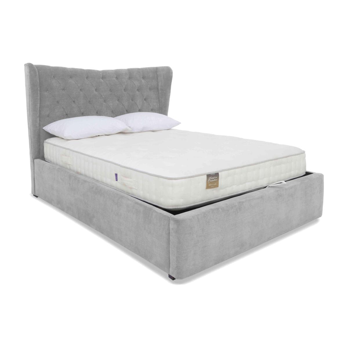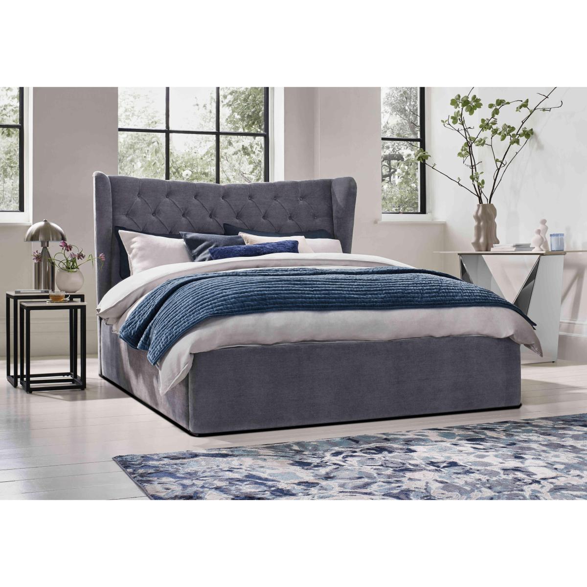 We love everything about this fabulous ottoman bed frame. It looks fabulous and that headboard is a real showstopper. And the ottoman storage space is just so roomy. Why you'll love it This luxurious ottoman bed frame will transform your bedroom. Contemporary elegance with practical storage. Showstopping tall headboard with gently curved wings. Sumptuously cushioned with sophisticated fluting. Set on dark ebony wood feet. Deep base for maximum storage capacity. Breathable slatted base promises a cooler night’s sleep. In a wide choice of upholstery fabrics. Handmade in the UK. The Highgrove Bourne ottoman bed frame is a Furniture Village exclusive. What you need to know Mattress sold separately. Wooden slat support. 28 slats in king size. Ottoman opens at the end. In small double, double, king and super king sizes. Please keep hands clear of the mechanism when opening and closing. Clean regularly using a soft brush or vacuum with the curtain attachment. Deal with any spills promptly. Professional cleaning advised for oil- and grease-based stains. Some fabrics can show wear on areas of more use or in direct sunlight. Flattening and shading of heavy wear areas on pile fabrics like velvet is unavoidable. Be sure to brush pile fabrics only in the direction of the pile. Please read our upholstery care guide for more advice.