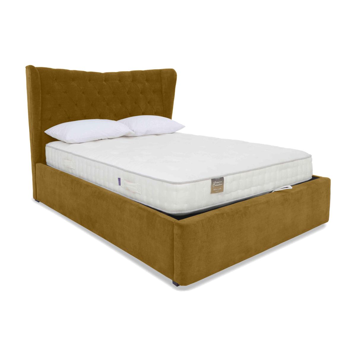 We love everything about this fabulous ottoman bed frame. It looks fabulous and that headboard is a real showstopper. And the ottoman storage space is just so roomy. Why you'll love it This luxurious ottoman bed frame will transform your bedroom. Contemporary elegance with practical storage. Showstopping tall headboard with gently curved wings. Sumptuously cushioned with sophisticated fluting. Set on dark ebony wood feet. Deep base for maximum storage capacity. Breathable slatted base promises a cooler night’s sleep. In a wide choice of upholstery fabrics. Handmade in the UK. The Highgrove Bourne ottoman bed frame is a Furniture Village exclusive. What you need to know Mattress sold separately. Wooden slat support. 28 slats in king size. Ottoman opens at the end. In small double, double, king and super king sizes. Please keep hands clear of the mechanism when opening and closing. Clean regularly using a soft brush or vacuum with the curtain attachment. Deal with any spills promptly. Professional cleaning advised for oil- and grease-based stains. Some fabrics can show wear on areas of more use or in direct sunlight. Flattening and shading of heavy wear areas on pile fabrics like velvet is unavoidable. Be sure to brush pile fabrics only in the direction of the pile. Please read our upholstery care guide for more advice.
