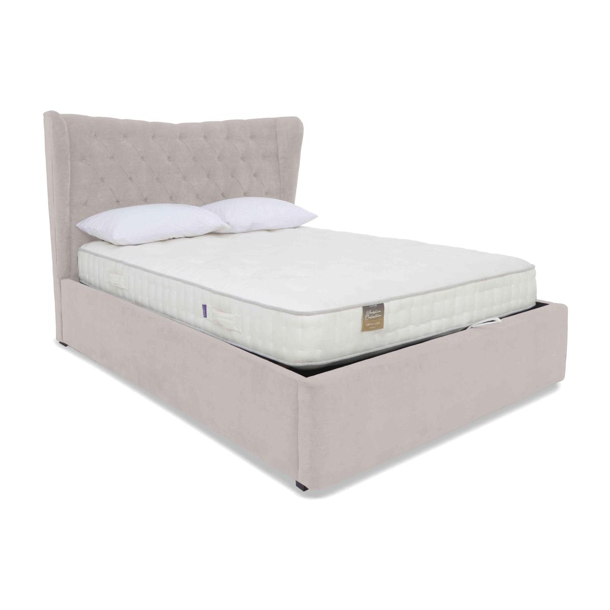We love everything about this fabulous ottoman bed frame. It looks fabulous and that headboard is a real showstopper. And the ottoman storage space is just so roomy. Why you'll love it This luxurious ottoman bed frame will transform your bedroom. Contemporary elegance with practical storage. Showstopping tall headboard with gently curved wings. Sumptuously cushioned with sophisticated fluting. Set on dark ebony wood feet. Deep base for maximum storage capacity. Breathable slatted base promises a cooler night’s sleep. In a wide choice of upholstery fabrics. Handmade in the UK. The Highgrove Bourne ottoman bed frame is a Furniture Village exclusive. What you need to know Mattress sold separately. Wooden slat support. 28 slats in king size. Ottoman opens at the end. In small double, double, king and super king sizes. Please keep hands clear of the mechanism when opening and closing. Clean regularly using a soft brush or vacuum with the curtain attachment. Deal with any spills promptly. Professional cleaning advised for oil- and grease-based stains. Some fabrics can show wear on areas of more use or in direct sunlight. Flattening and shading of heavy wear areas on pile fabrics like velvet is unavoidable. Be sure to brush pile fabrics only in the direction of the pile. Please read our upholstery care guide for more advice.
