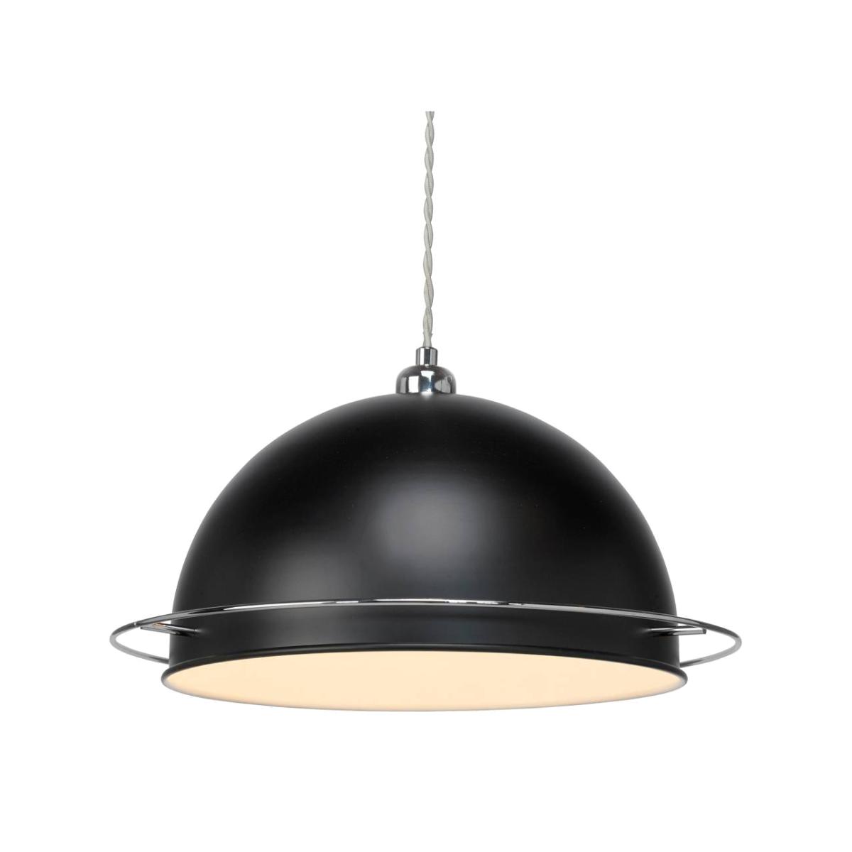 Bauhaus 1-light easy-fit pendant shade, featuring a matte black finish and a chrome ring detail. A retro-inspired pendant light shade, the Bauhaus pendant ceiling shade features a metal dome with a black finish. A polished chrome ring around the shade completes the design. Ideal for updating your interiors without the need for an electrician. Bauhaus 1-light easy-fit pendant shade, featuring a matte black finish and a chrome ring detail. A retro-inspired pendant light shade, the Bauhaus pendant ceiling shade features a metal dome with a black finish. A polished chrome ring around the shade completes the design. Ideal for updating your interiors without the need for an electrician.