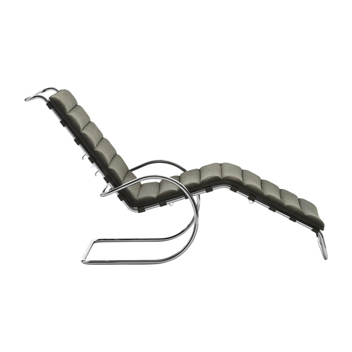 Ludwig Mies van der Rohe's MR Adjustable Chaise Longue has received an update in celebration of the centenary of the Bauhaus. Originally designed in 1929, Knoll has re-released the iconic design in a chrome and Velour suede finish. One of Mies van der Rohe's earliest steel designs, the chaise longue boasts a strikingly contemporary silhouette that is widely considered to be a modern interpretation of traditional rocking chairs. The MR Adjustable Chaise Longue's immediately identifiable silhouette is achieved through a curved frame crafted using polished-chrome tubular steel. Available upholstered in luxurious Velour suede in a range of warm hues, the chair is padded using removable foam cushions and finished with leather-covered structural straps in either black, white beige or dark brown to match your upholstery choice.