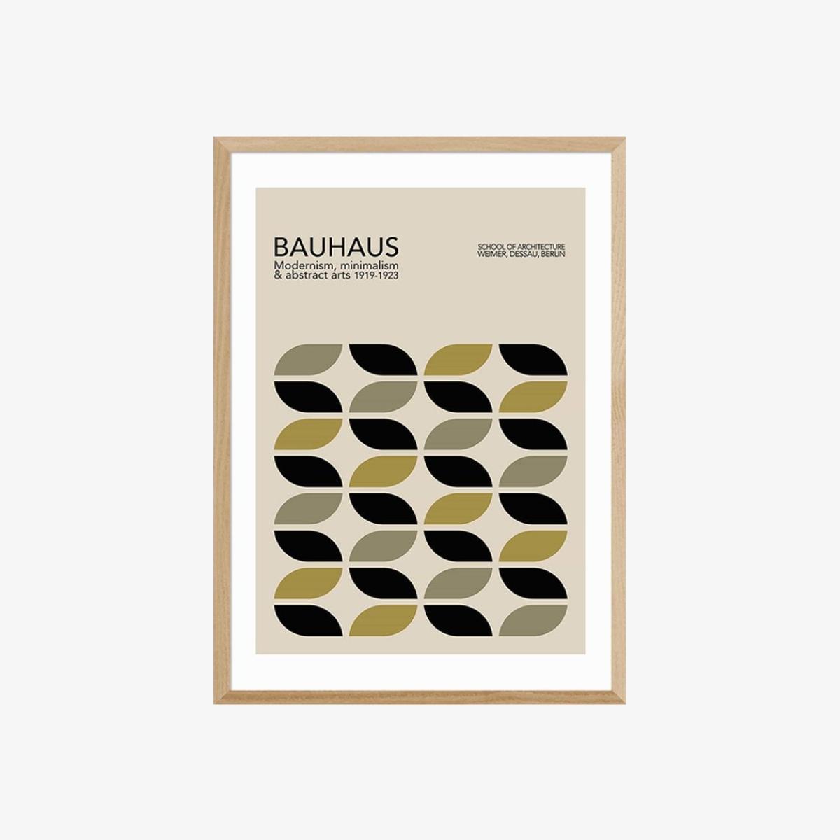 I love this Bauhaus piece for its clean, geometric aesthetic and neutral palette, which makes it incredibly versatile. It works particularly well in modern or minimalist interiors, where it can add visual interest without overwhelming the space. To style it effectively, consider placing it above a neutral-toned sofa or a wooden sideboard to complement the oak detail, or in a gallery wall with other monochrome or textured prints for a cohesive look. Practical tips include pairing it with simple black or white frames to keep the focus on the design, and placing it at eye level to create a striking focal point. This artwork’s understated yet structured vibe makes it a great addition to both living rooms and offices looking for a contemporary touch.