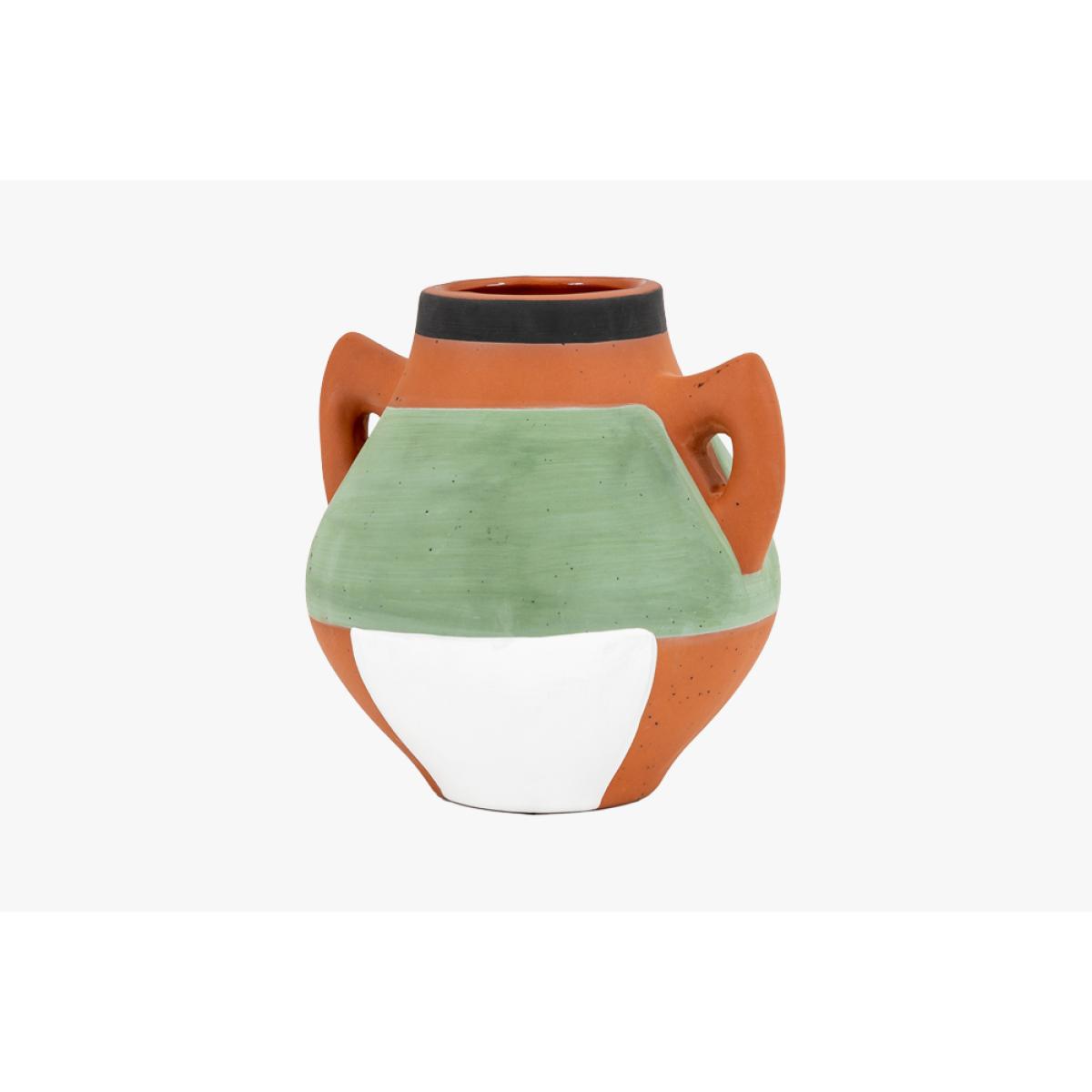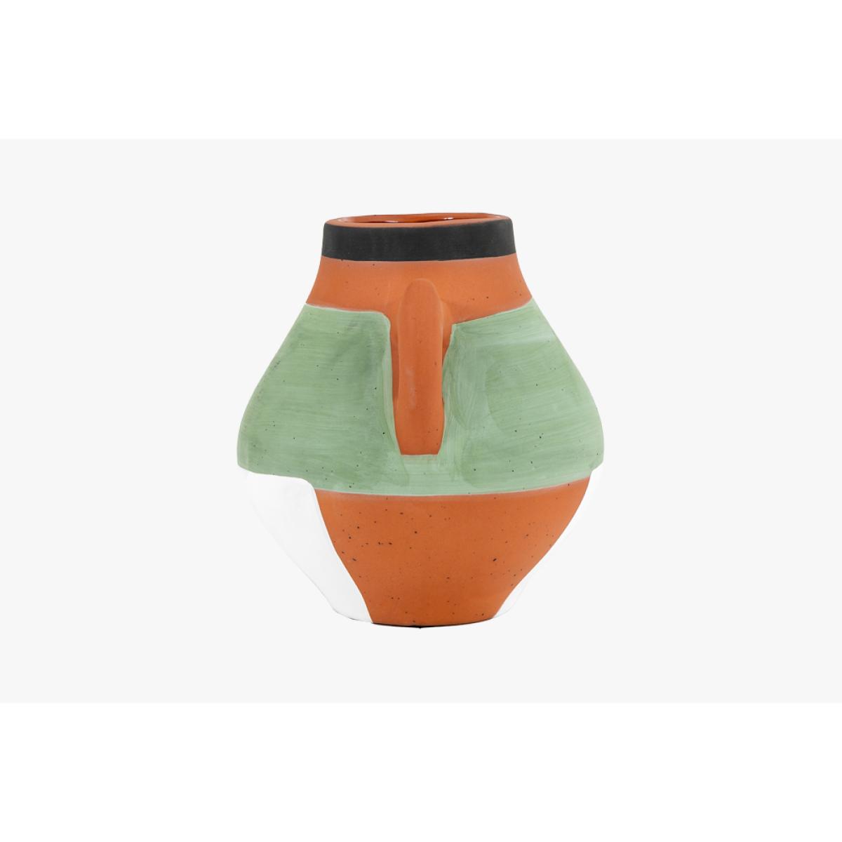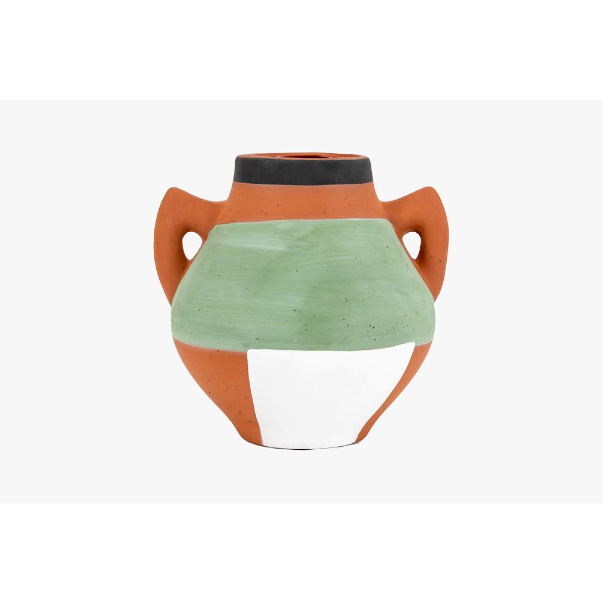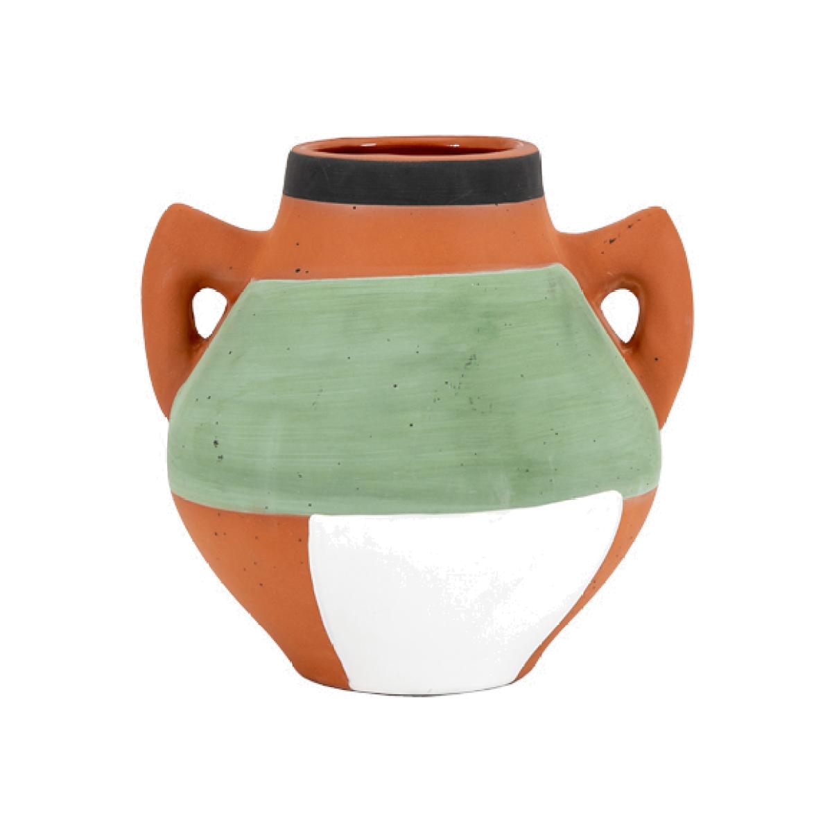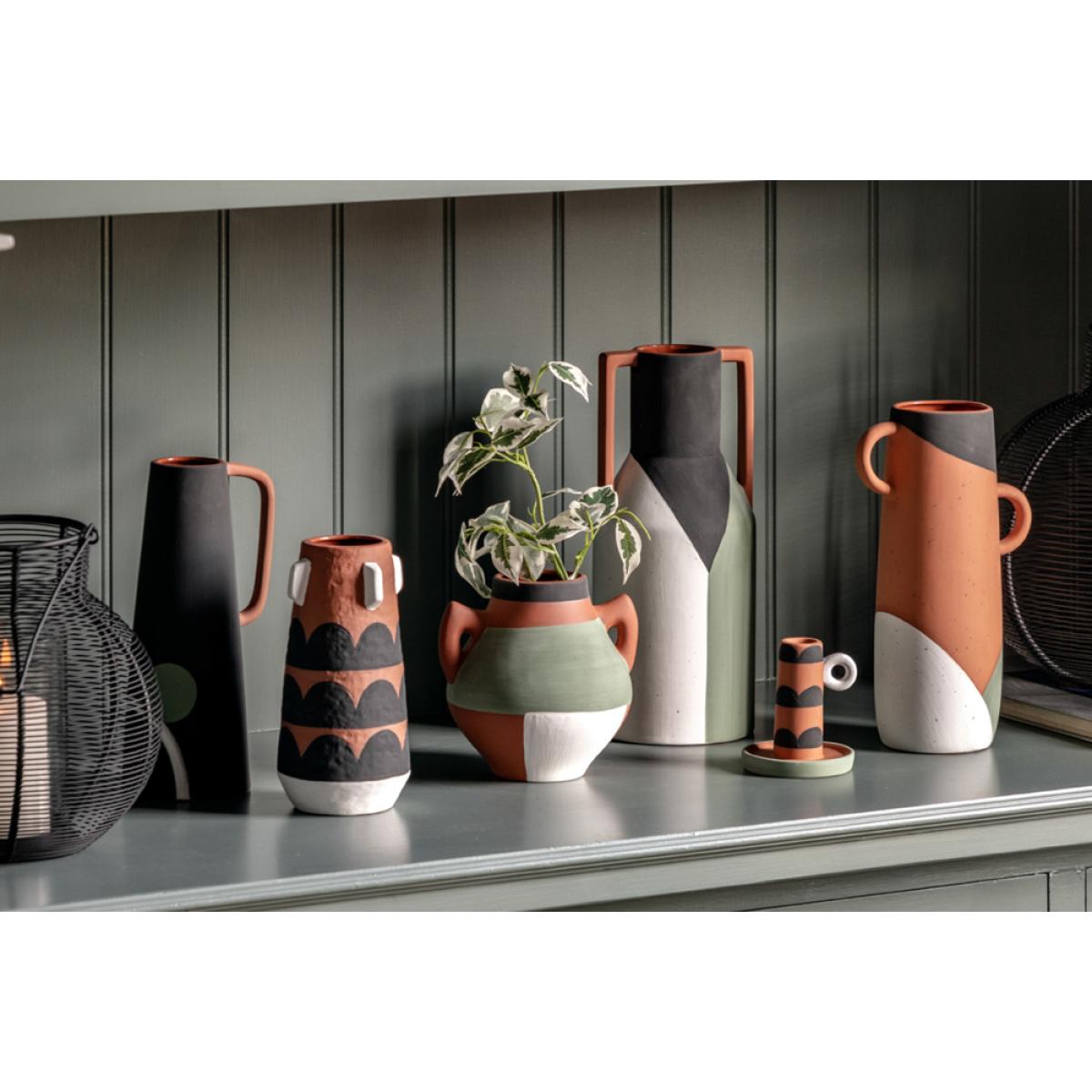 I love this little Bauhaus pot for its versatile colour palette and clean, geometric design. It works particularly well in contemporary or eclectic interiors, adding a pop of colour and visual interest without overpowering the space. Practical styling tips include pairing it with simple, structured arrangements of artificial flowers or plants to keep the look modern, or using it as a standalone decorative piece on a shelf or console table. Its earthy tones make it adaptable for both muted or more vibrant colour themes, and it can be easily combined with other ceramics or textured accessories to create an eclectic vibe.
