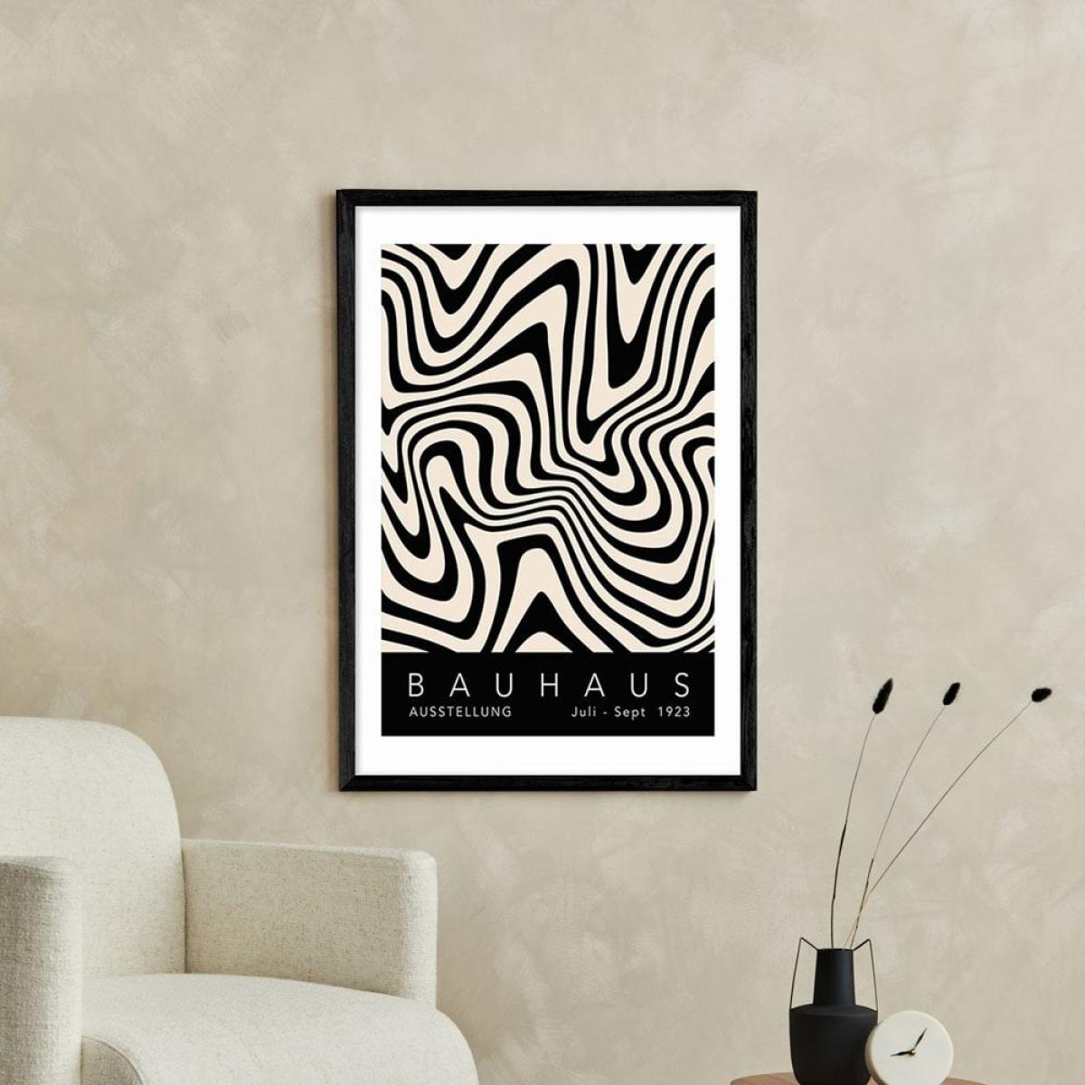 I love the Bauhaus swirls print for its bold, graphic appeal that makes a statement without being overwhelming. It works particularly well in minimalist or modern interiors where clean lines and neutral palettes are key, as it adds visual interest and a touch of artistic flair. For practical styling, consider pairing it with simple, understated frames to let the artwork stand out or offset it with textured fabrics and furniture to create a balanced look. Its larger size makes it an ideal focal point above a sofa or console, offering a contemporary edge that’s both striking and versatile.