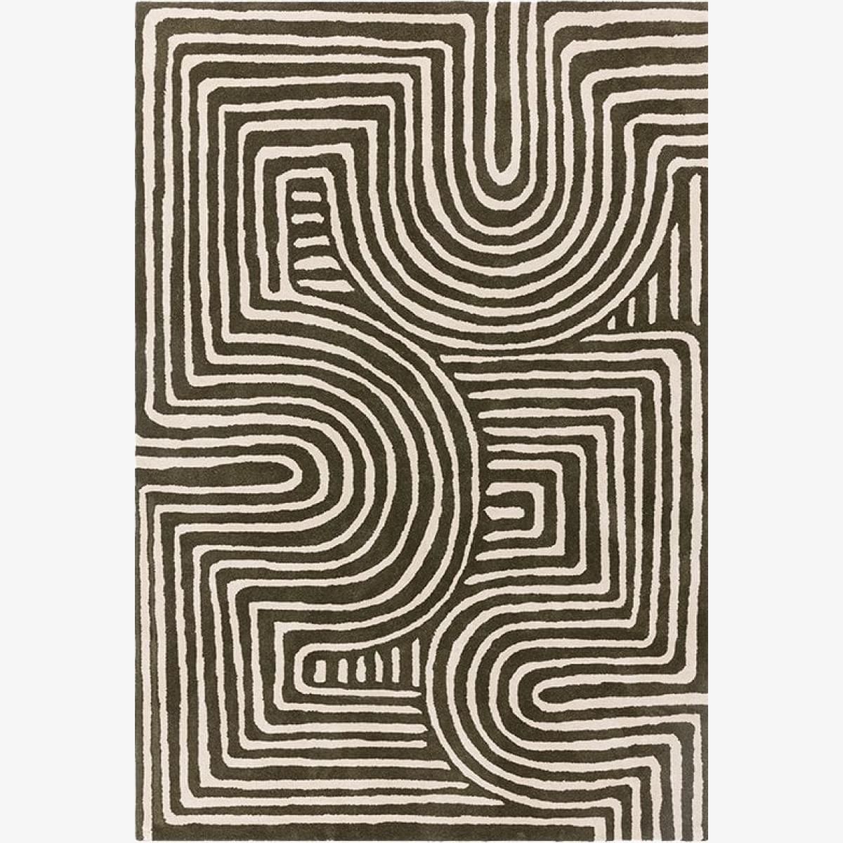 Bauhaus Wave Rug, Forest Green Rug Size: 120 x 170cm Modern Designed Rugs, Colourful Contemporary Rug