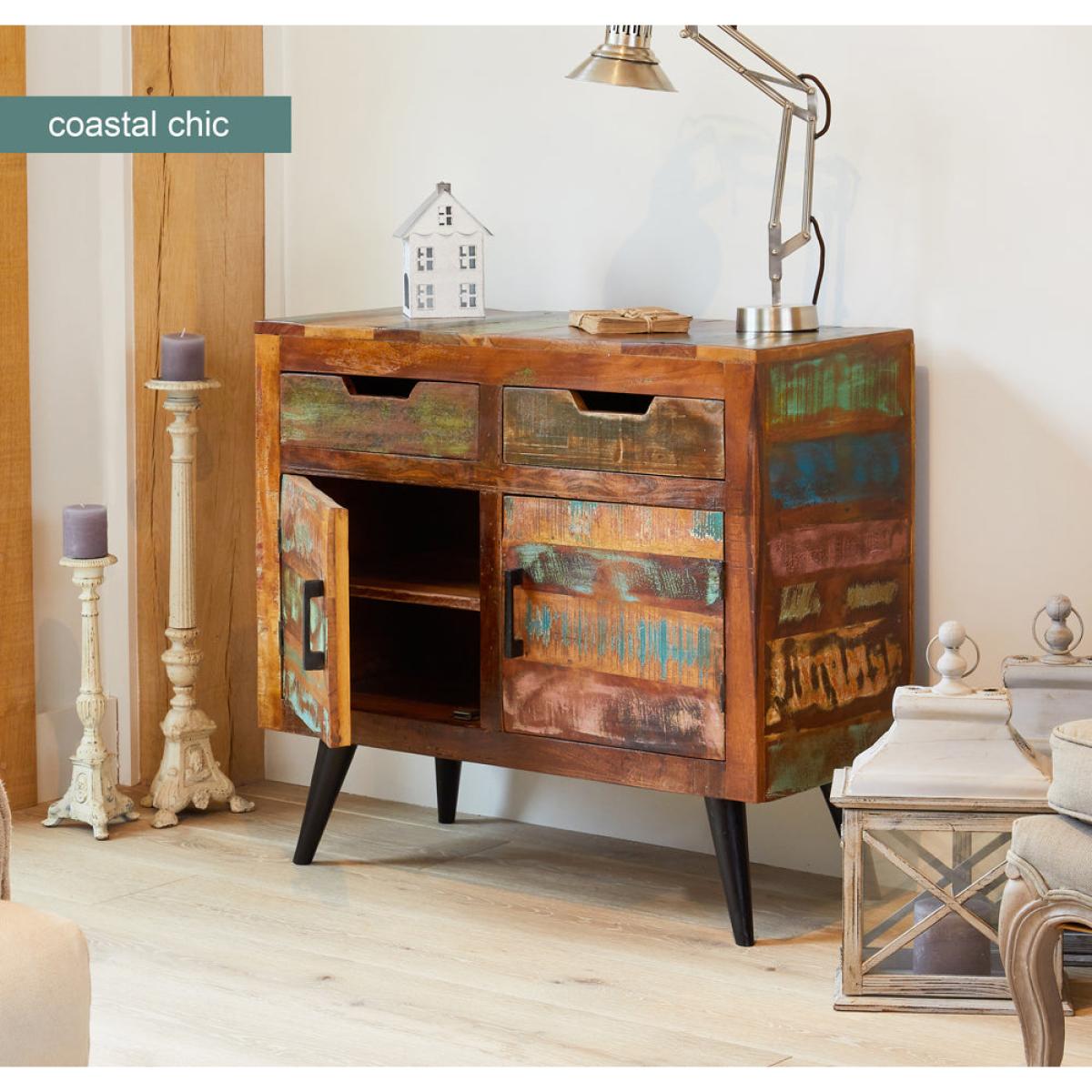 I love this piece because of its distinctive, colourful distressed finish which adds character and personality to any space. It works particularly well in coastal-inspired or eclectic interiors, where its vibrant, weathered look can complement natural textures and laid-back styles. Practical styling tips include keeping surfaces clutter-free with decorative accessories like candles or trays, and using the storage drawers and cupboards for essentials or folded linens. It can also serve as a statement piece in a living room or hallway, anchoring the space while providing useful storage without overwhelming the room. Its unique finish ensures it adds a personalised touch wherever it’s placed.